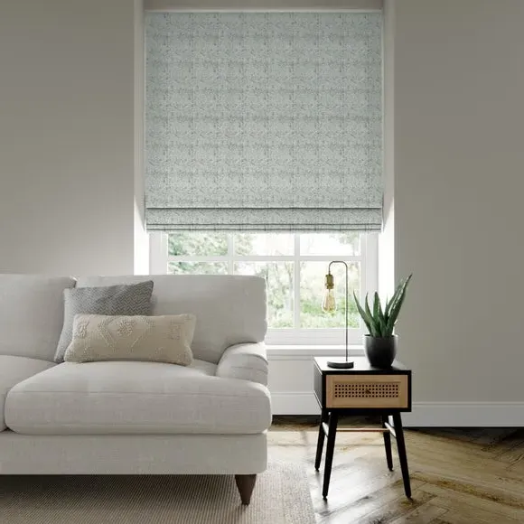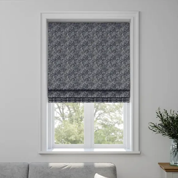 The Roman blind features textured jacquard print with traditional floral patterns, crafted from cotton fabric. Its made-to-measure design provides a custom fit, while the selection of lining options includes blackout, thermal, or standard finishes. The blind offers versatile window treatment with coordinating items available separately. Note that widths over 130cm may include a fabric join to achieve the required coverage.