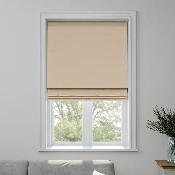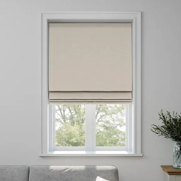 * Choose from 3 linings* Select your fitting type* Pick a side for the operating chain Made from 100% recycled polyester, this timeless jacquard fabric adds both a stylish and sustainable touch to your home. Please note this fabric is dry clean only.**Choosing your lining:*** Blackout provides minimal light disturbance in your home making it perfect for bedrooms.* Thermal helps to keep the warmth in and the cool air out meaning it’s great for family rooms or lounges.* Our Standard Lining is perfect if you like the glow of natural light whilst your curtains are closed whilst still maintaining your privacy.**Choosing your fitting type:*** Inside the recess: this gives a tidy, snug finish as it’s made to fit your window exactly.* Outside the recess: this option is great if you don’t want the blind to be visible from the outside when it’s drawn up.**Choosing which side you’d like the operating chain:*** Think about where your blind will be situated and what furniture may be near it – choose the side that is easier for you to access.**Child Safety:**We add clips to the back of our roman blinds to attach the cords to the fabric. They also double up as a child safety feature. If pressure is exerted the clips will detach to prevent the risk of strangulation. If the clips detach accidentally during normal use, they can be easily re-clipped back into place. Please note: If your measured width is over 130cm your blinds may come with a fabric join to provide the full width required.