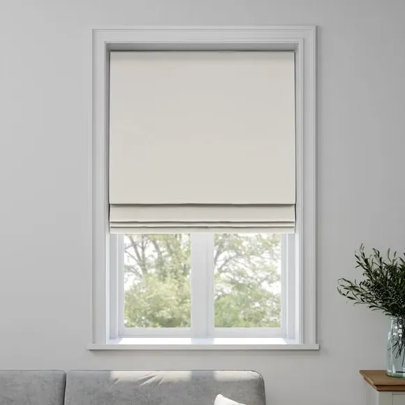 The Roman Blind combines sustainable design with its 100% recycled polyester construction, featuring a clean plain finish. Its customizable lining options provide blackout, thermal, or standard light filtering, while the made-to-measure sizing ensures a precise fit. The operating chain can be positioned on either side for convenient access, and the safety clips attach cords securely to the fabric while providing child protection features.