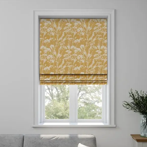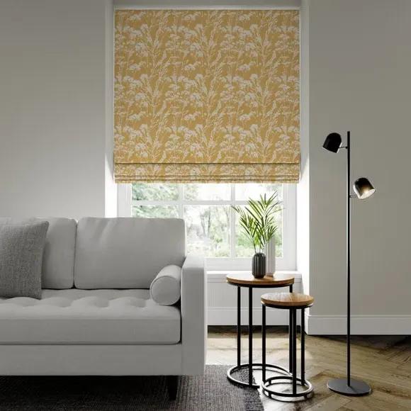 The Roman blind offers customizable window coverage with its made-to-measure design, featuring a vibrant marigold floral print inspired by wild flowers. Its 100% cotton construction provides natural texture and durability, while three lining options allow you to choose between blackout, thermal, or standard coverage. The flexible installation accommodates both inside and outside recess mounting, and the operating chain can be positioned on either side to suit your space.