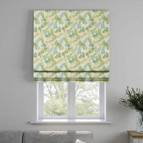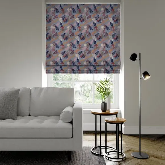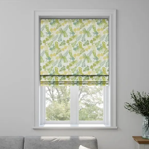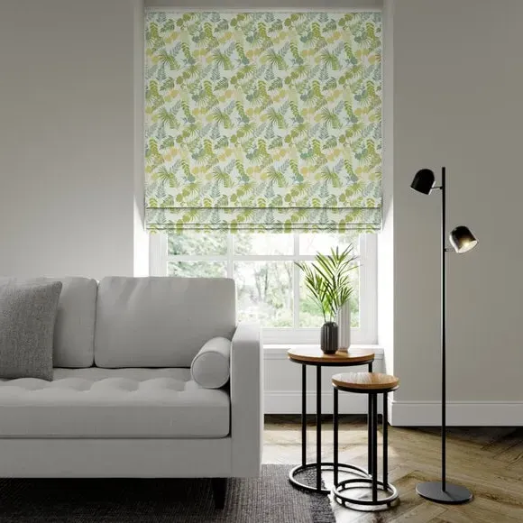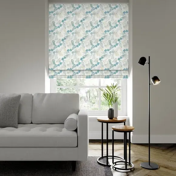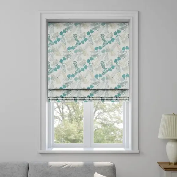 * Choose from 3 linings* Select your fitting type* Pick a side for the operating chain Available in an array of subtle colourways, the Tropical range of Roman Blinds hosts a leafy and floral design which welcomes a personal touch into your home.**Choosing your lining:*** Blackout provides minimal light disturbance in your home making it perfect for bedrooms.* Thermal helps to keep the warmth in and the cool air out meaning it’s great for family rooms or lounges.* Our Standard Lining is perfect if you like the glow of natural light whilst your curtains are closed whilst still maintaining your privacy.**Choosing your fitting type:*** Inside the recess: this gives a tidy, snug finish as it’s made to fit your window exactly.* Outside the recess: this option is great if you don’t want the blind to be visible from the outside when it’s drawn up.**Choosing which side you’d like the operating chain:*** Think about where your blind will be situated and what furniture may be near it – choose the side that is easier for you to access.**Child Safety:**We add clips to the back of our roman blinds to attach the cords to the fabric. They also double up as a child safety feature. If pressure is exerted the clips will detach to prevent the risk of strangulation. If the clips detach accidentally during normal use, they can be easily re-clipped back into place. Please note: If your measured width is over 130cm your blinds may come with a fabric join to provide the full width required.