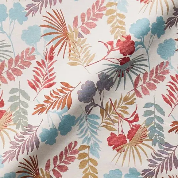 The Roman blind offers customizable light control with three lining options including blackout, thermal, and standard. Its leafy floral design features tropical motifs, while the made-to-measure construction ensures a precise fit for your window. The operating chain can be positioned on either side for convenient access, and the safety clips provide secure cord attachment with child-safe release functionality.