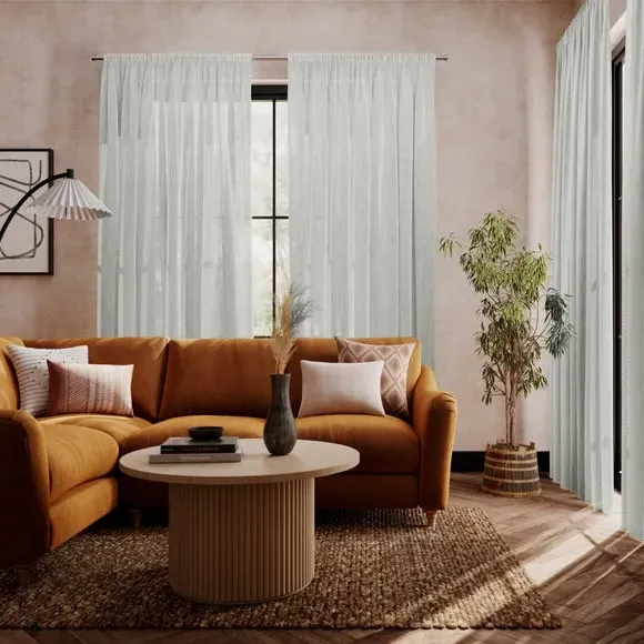 * Heavy weight unlined voile curtain* Textured woven design* Available in a selection of colours and header options* Coordinating Made to Measure Fabric by the Metre available to purchase separately Add texture and sophistication to your home with the Brae Made to Measure Voile Curtain. This heavyweight unlined voile fabric features a textured woven design, offering a chic and contemporary finish. Ideal for crafting custom curtains, it provides privacy while softly diffusing natural light. Available in a selection of colors and header options, you can personalise every detail to create a polished, bespoke look.