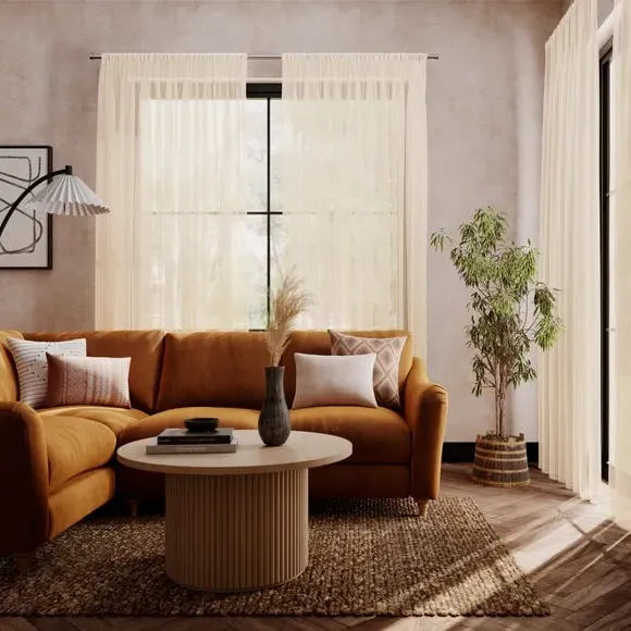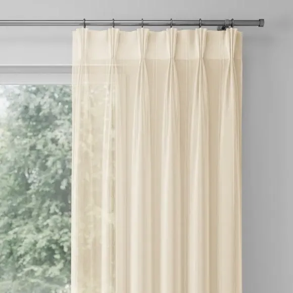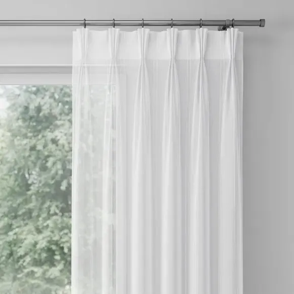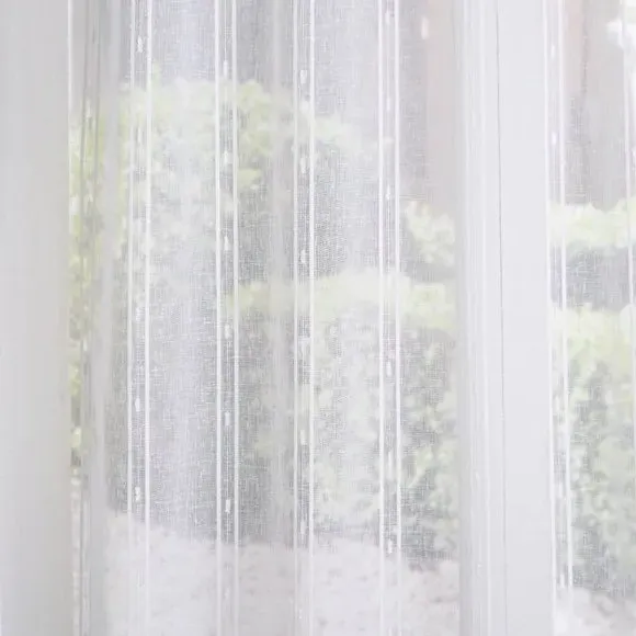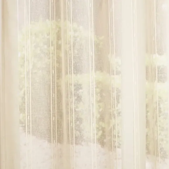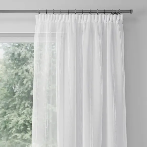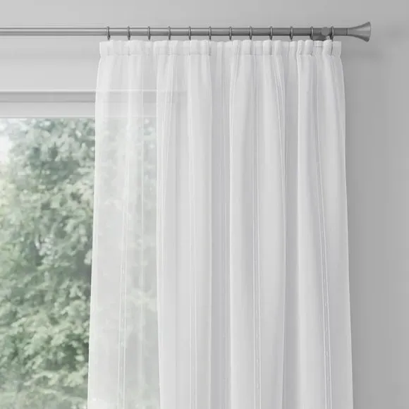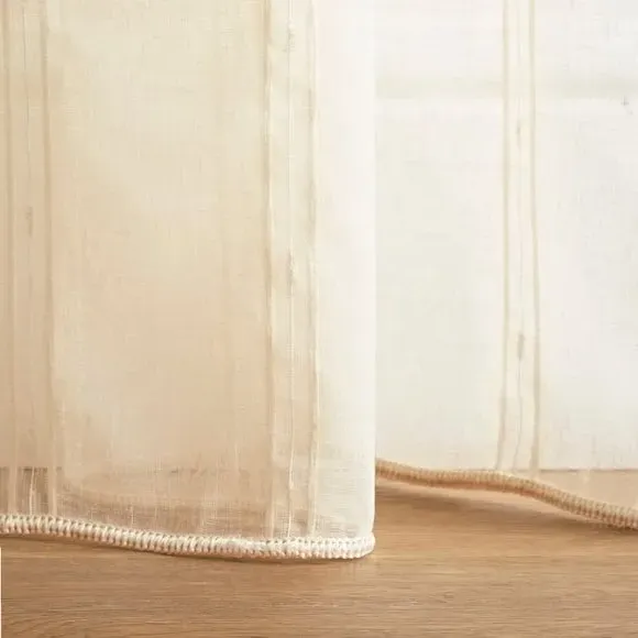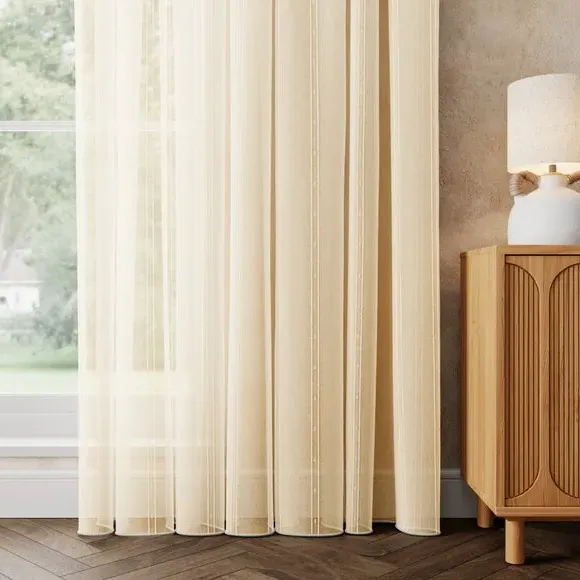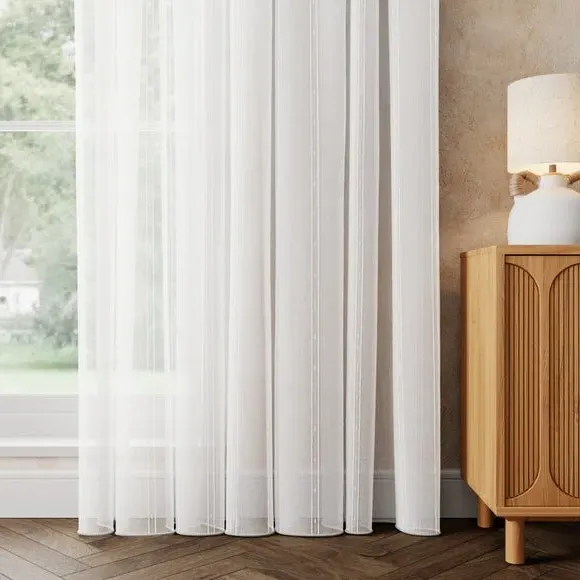 The voile curtains provide lightweight coverage with polyester fabric enhanced by chenille vertical stripe detailing. Their semi-transparent nature filters light effectively while preserving privacy, and the selection of header options allows for customized installation. The combination of softness and structure makes them suitable for various window configurations.