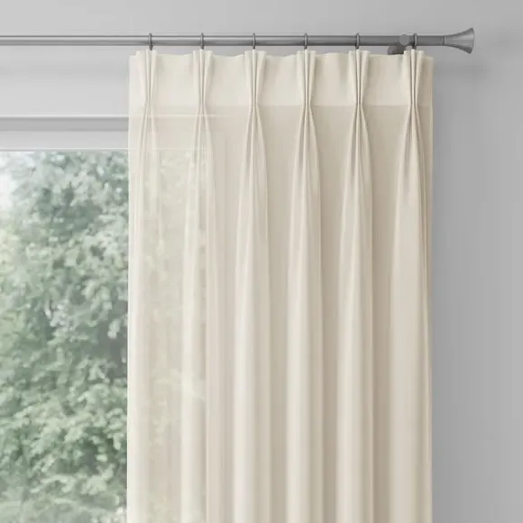 * Fire retardant fabric and lining (complies to BS5867 Section 2, Type B & Type C)* Suitable for Domestic, Hospitality, Workspace and Healthcare Environments** Lightweight, polyester composition* Soothing plain design* Available in a selection of header options* Coordinating Made to Measure Fabric by the Metre available to purchase separately Create a serene and stylish atmosphere with the Sapphire Made to Measure Voile Curtain. This lightweight polyester fabric features a soothing plain design, offering a versatile and timeless option for any room. Ideal for crafting custom curtains that gently filter light while maintaining privacy, it’s available with matching made-to-measure options in a selection of header styles to suit your décor.*If you are unsure on testing requirements for your chosen environment, check with a qualified fire officer what testing is required & that this meets your needs.