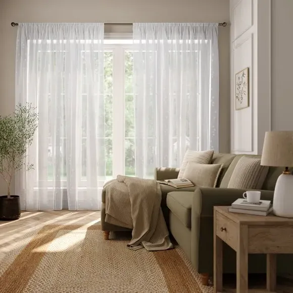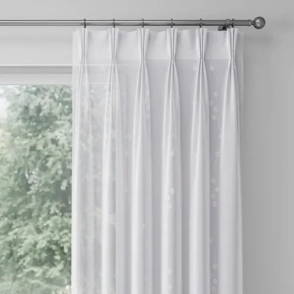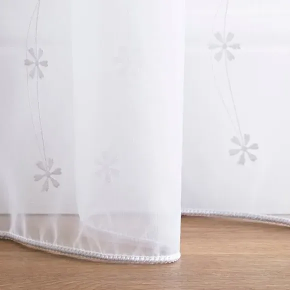 * Lightweight and airy composition* Soft embroidered Daisy design* Available in a selection of header options* Coordinating Made to Measure Voile Curtain available to purchase separately Infuse your space with charm using the Daisy Made to Measure Voile Curtain. This lightweight, airy fabric features a soft embroidered daisy pattern, offering a whimsical, boho-inspired look. Perfect for creating bespoke curtains that provide privacy without blocking natural light, it’s a refreshing choice for any room. Customise your window treatments as these curtains are available in a selection of header styles for a perfect finish.