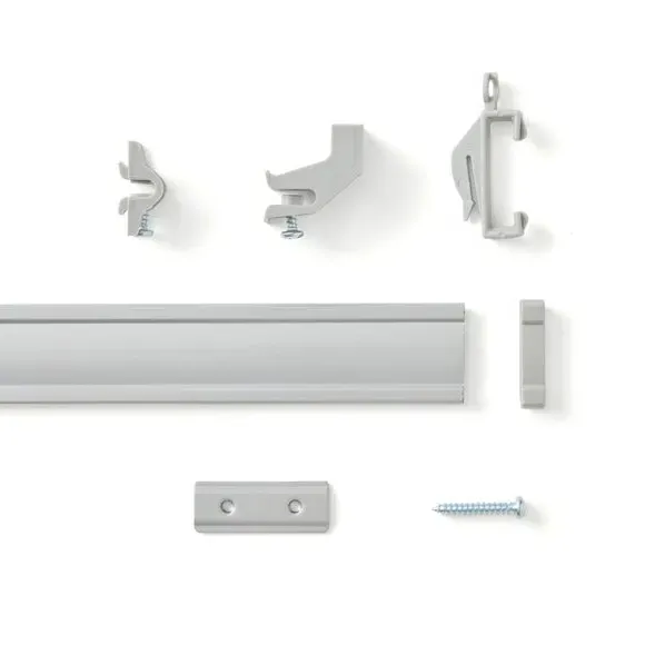 The curtain track offers versatile mounting with its flexible aluminium construction that bends by hand for straight and bay windows. Its clip-on glider design provides ample support while ensuring curtains cover the track completely. The gliders feature an extra eyelet for attaching separate linings, while the uncorded system suits light to medium weight pencil pleat curtains. The complete set includes gliders, brackets, end stops, and fixings for wall or ceiling installation.