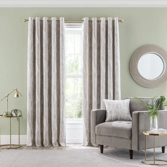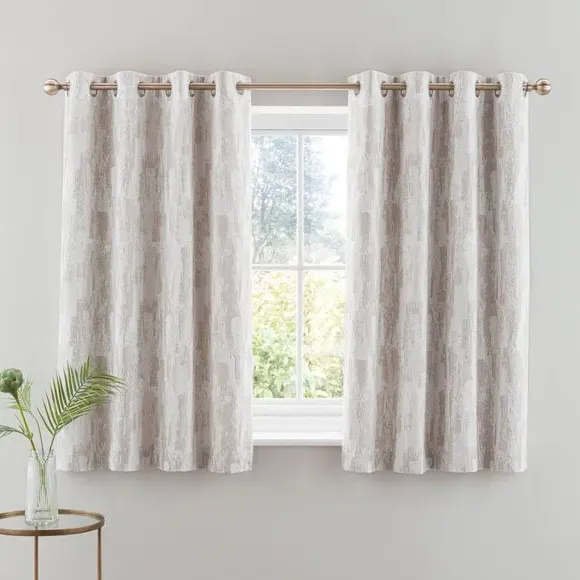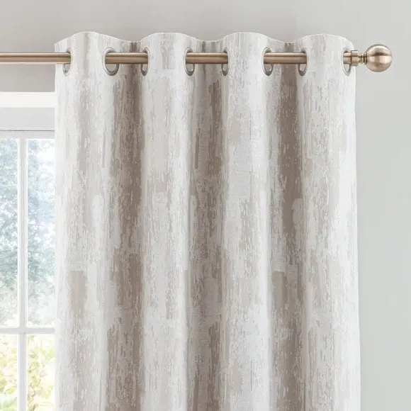 * 1 pair - includes 2x curtain panels* Abstract geometric design* Recycled polyester lining to add fullness and drape* Easy to hang eyelet header This gorgeous pair of curtains that feature an abstract woven design will complement an array of home decors. Fully lined for added fullness and drape, the curtain pair comes with a modern eyelet header for easy installation and beautiful folds. Available in a large variety of sizes to suit your needs. Pair with coordinating cushions to complete the look. The size of the curtains shown is the size of 1 panel, you will receive 2 panels of this size. Choose the width that is closest to your pole length for full look.**Please note:** Pattern matching can not be guaranteed across multiple pairs of curtains. This collection is verified by OEKO-TEX and independently tested for harmful substances as well as manufactured using sustainable processes under socially responsible working conditions.