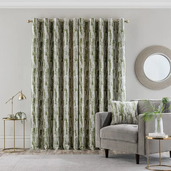 Pair Eyelet Curtains Abstract Design - Moss Green