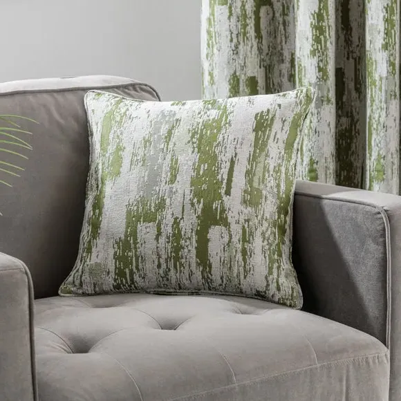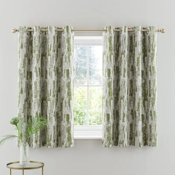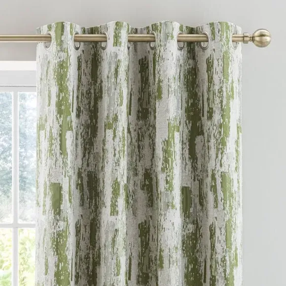Home  /  Bedding & Textile  /  Curtains  /  Pair Eyelet Curtains Abstract Design - Moss Green