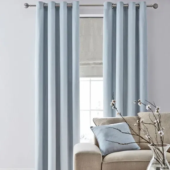 Home  /  Bedding & Textile  /  Curtains  /  Pair Eyelet Curtains with Herringbone - Duck Egg