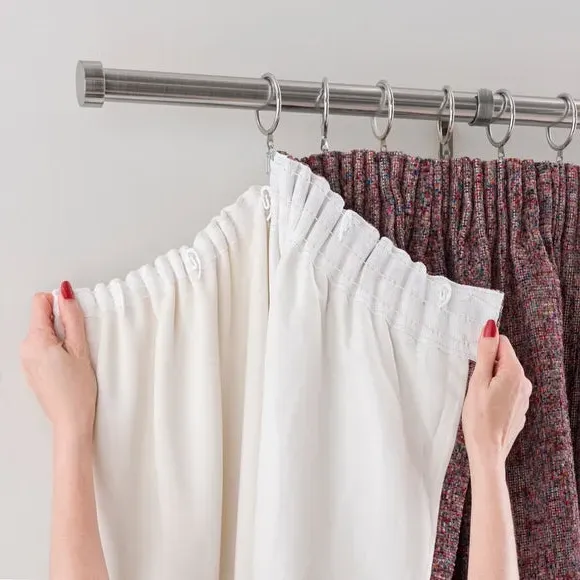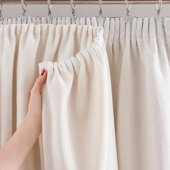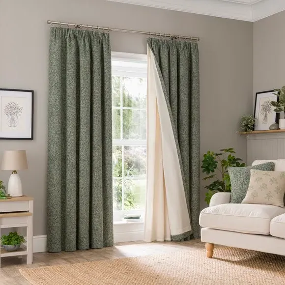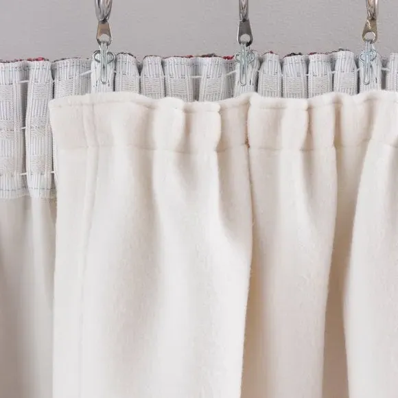 The curtain lining offers superior thermal properties with its dense fleece construction, designed with a pencil pleat header for reliable pole installation. Its thick material provides insulation against cold draughts while reducing noise levels. The fleece fabric enhances energy efficiency and shields interior decor from harmful sun exposure.