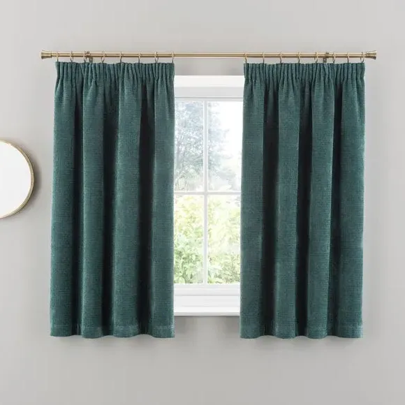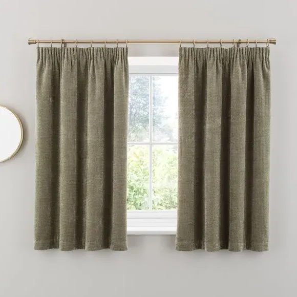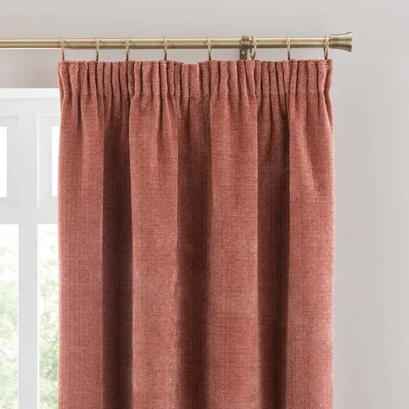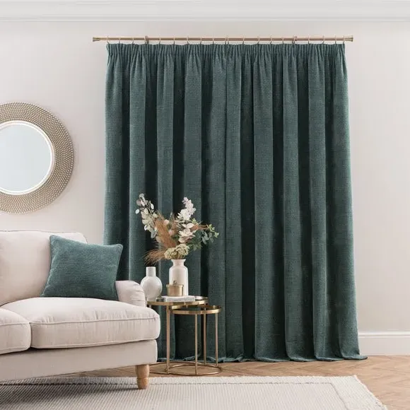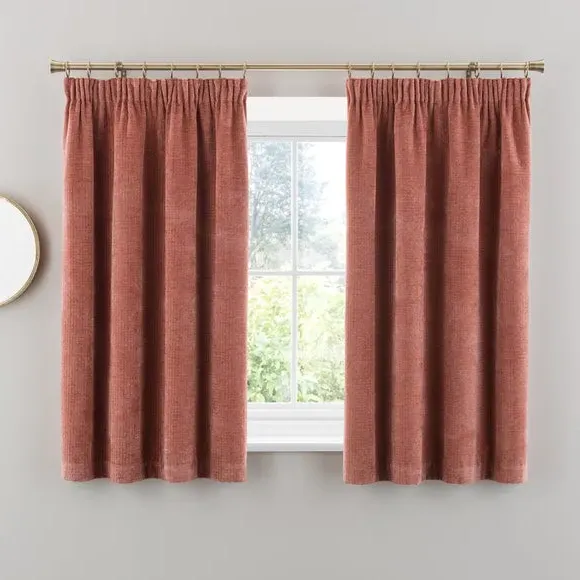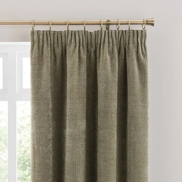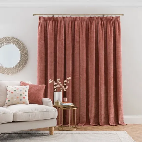 * Available in a wide range of colours* Basketweave design* Pencil pleat header* Multiple sizes available* Coordinating cushion in the range These super soft Alayna Chenille curtains feature a basketweave design for textured interest and a classic pencil pleat header. Available in a wide range of colours to best suit your decor, they are made from 100% recycled polyester and are fully lined. They are easy to hang and a matching cushion is available for a full look. Please note: These curtains are sold as a pair. Once these curtains have been gathered, refunds or exchange cannot be given unless on faulty merchandise.