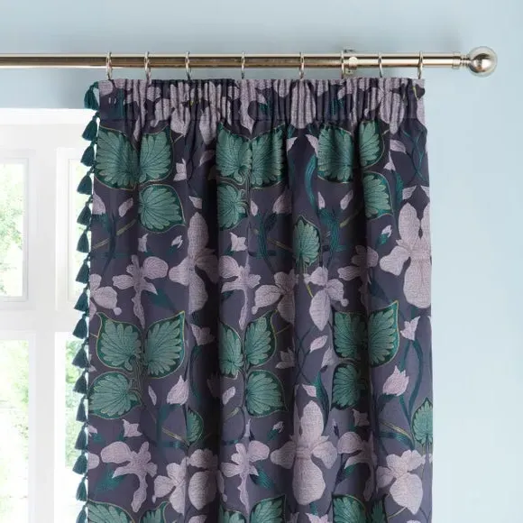 * 1 Pair - Includes 2 x Panels* Modern, Striking Floral Design* Eye-Catching Contrast Trim* Smart Pencil Pleat Header* Made from 100% Polyester* Available in Multiple Sizes Ideal for adding a wow factor to any room, the Nouveau Iris Pencil Pleat Curtains are woven from luxurious and high-quality polyester and boast a contemporary floral design complemented by a fabulous contrast trim.