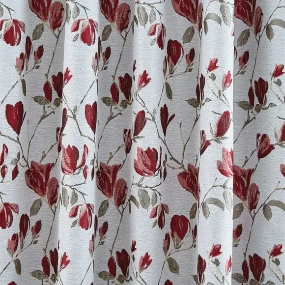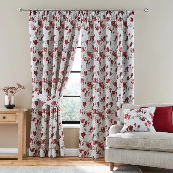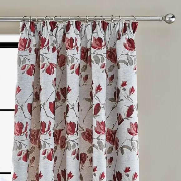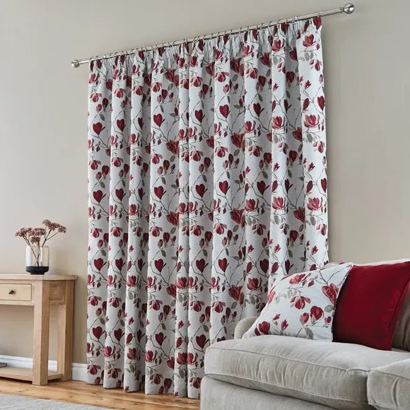 The curtains feature a trailing floral design crafted from luxurious jacquard fabric, accented by a traditional pencil pleat header. The fully lined construction provides enhanced privacy and insulation, while the undulating drape adds sophisticated appeal. These curtains include 2 panels and coordinate with various decorative styles throughout all seasons.