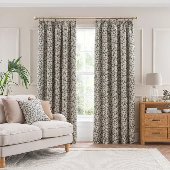 * 1 pair - includes 2x curtain panels* Classic pencil pleat header Available in a range of sizes, this pair of curtains comes complete with a pencil pleat heading suitable to create a luxurious, full gathered finishing touch in any room. These curtains are fully lined for added insulation and have been designed with a classic tapestry floral jacquard print. The size of the curtains shown is the size of 1 panel, you will receive 2 panels of this size. Choose the width that is closest to your pole length for full look.