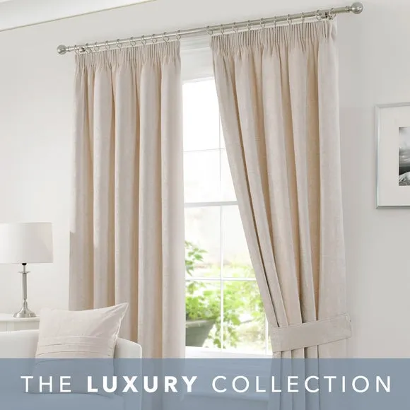 The curtains feature a traditional pencil pleat header with soft chenille yarn that provides luxurious texture and subtle sheen. The full lining creates a lavish drape while helping to reduce draughts and retain heat. Each pair includes two panels crafted from beautifully soft chenille material. The lined construction adds weight and structure for enhanced hanging quality and thermal benefits.