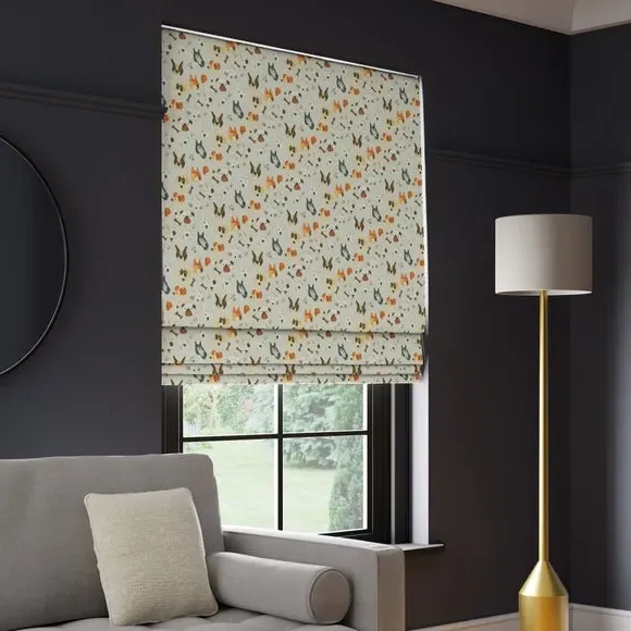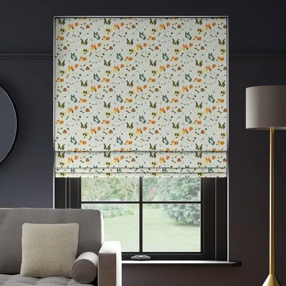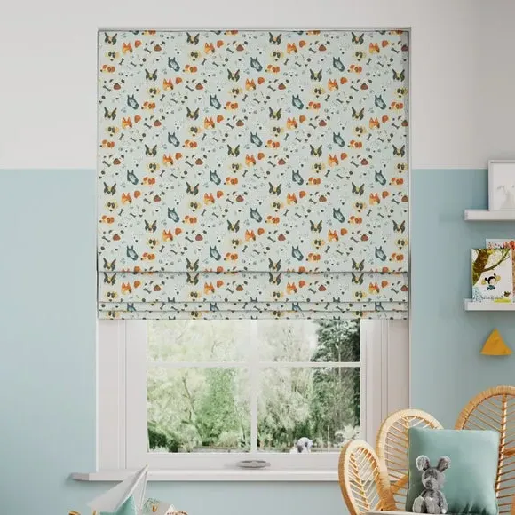 * Choose from 3 linings* Select your fitting type* Pick a side for the operating chain The Portrait Pups Roman Blinds features a quirky, animated dog design on 100% cotton. A web exclusive design, you won't find this in stores!**Choosing your lining:*** Blackout provides minimal light disturbance in your home making it perfect for bedrooms.* Thermal helps to keep the warmth in and the cool air out meaning it’s great for family rooms or lounges.* Our Standard Lining is perfect if you like the glow of natural light whilst your curtains are closed whilst still maintaining your privacy.**Choosing your fitting type:*** Inside the recess: this gives a tidy, snug finish as it’s made to fit your window exactly.* Outside the recess: this option is great if you don’t want the blind to be visible from the outside when it’s drawn up.**Choosing which side you’d like the operating chain:*** Think about where your blind will be situated and what furniture may be near it – choose the side that is easier for you to access.**Child Safety:**We add clips to the back of our roman blinds to attach the cords to the fabric. They also double up as a child safety feature. If pressure is exerted the clips will detach to prevent the risk of strangulation. If the clips detach accidentally during normal use, they can be easily re-clipped back into place.**Online Only**: This product is only available to order online. Our expert virtual consultants can provide advice on measuring/fitting and style tips and our free samples can be ordered online to be delivered straight to your home to help you choose a fabric that's right for you. Once you're happy, simply place your order online and we'll do the rest. Please note: If your measured width is over 130cm your blinds may come with a fabric join to provide the full width required.
