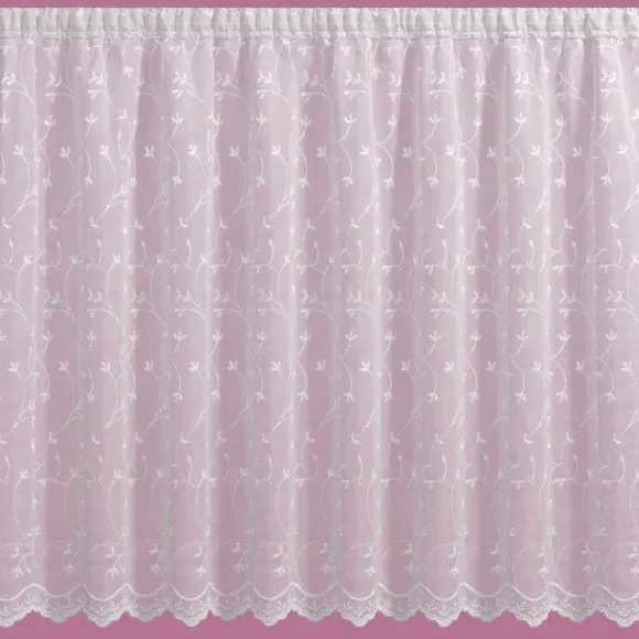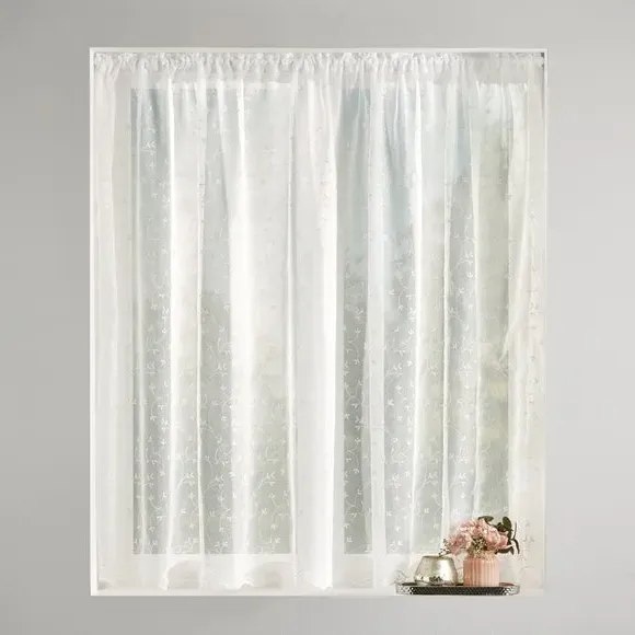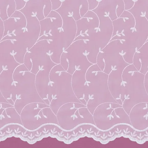 * Daytime privacy – restricting view from the outside.* Light filtering – will block out excessive light enabling a more diffused natural light to your home.* UV Protection – will offer a degree of protection for your home interiors from direct sunlight.* Can help to hide unsightly outside views.* Air Filter- can act as an air filter to the room, trapping small particles and debris when windows are open, keeping out insects and pollen.* Insulation – offer a degree of insulation against heat and cold. Using iridescent threads, this embroidered floral voile is available by the meter in a wide selection of drops.1 quantity = 1 metre. Multiple quantities will be supplied as one continuous piece. Because our fabric by the metre is cut to the size you require, we can only accept returns if the item is faulty (i. e. damaged or marked). Please be aware, this is a woven fabric and when cut it will fray unless stitched, therefore some fraying may occur during transit, it is recommended that this product should be stitched on receiving before being hung in the window, this will stop any fraying whilst hung or cleaning.