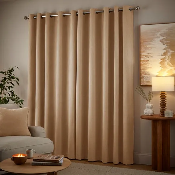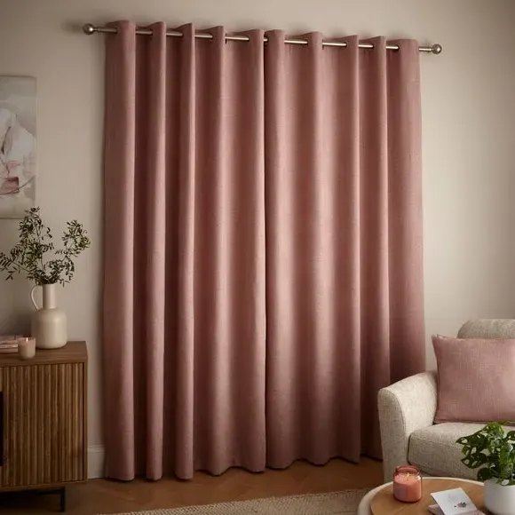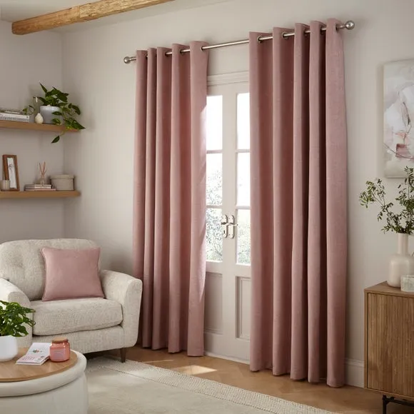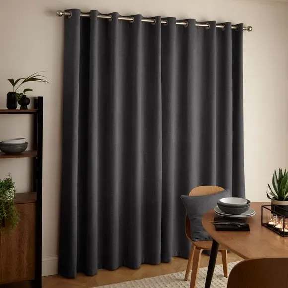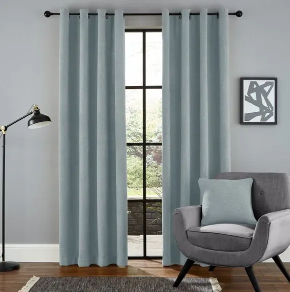 * 1 pair - includes 2x curtain panels* Stylish and sophisticated chenille fabric* Thermal lined* Eyelet header* Available in a range of colours and sizes* Co-ordinating cushion available These sumptuously smooth Wynter Thermal Eyelet Curtains will make all your decor goals a reality. They're made from chenille fabric, which is soft, textured, and perfect for complementing a variety of decorative styles. They feature a thermal coating that helps insulate your home through all seasons by blocking external heat in summer and prevent cool draughts in winter while providing added privacy. These versatile curtains come complete with an eyelet header for easy installation and smooth movement across your curtain pole. And don't forget the coordinating cushion, available to purchase separately! The size of the curtains shown is the size of 1 panel, you will receive 2 panels of this size. Choose the width that is closest to your pole length for full look.