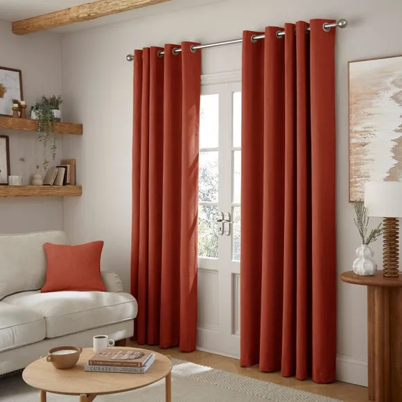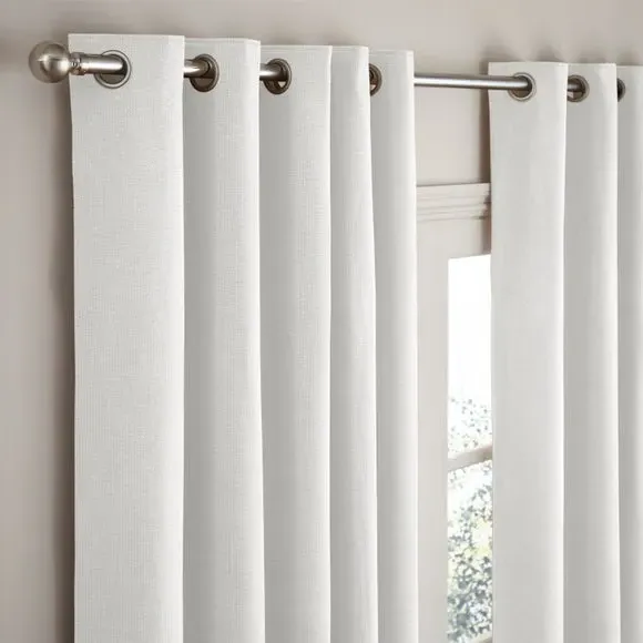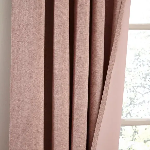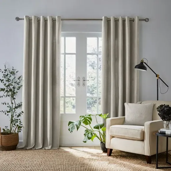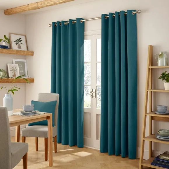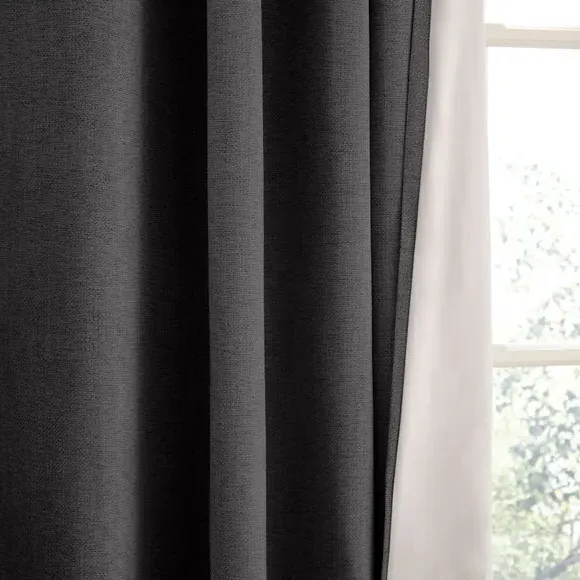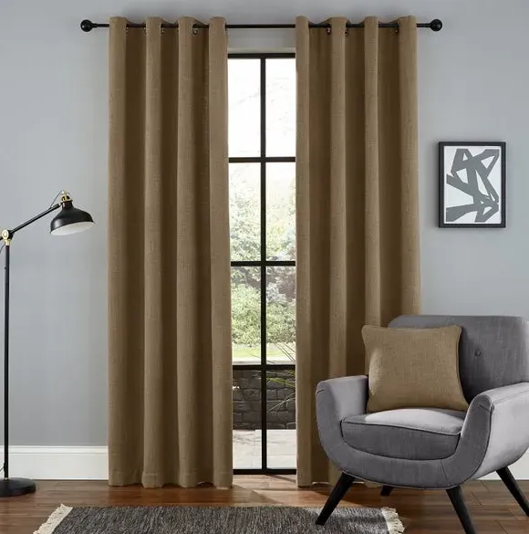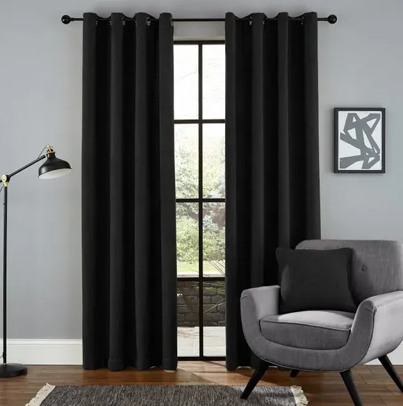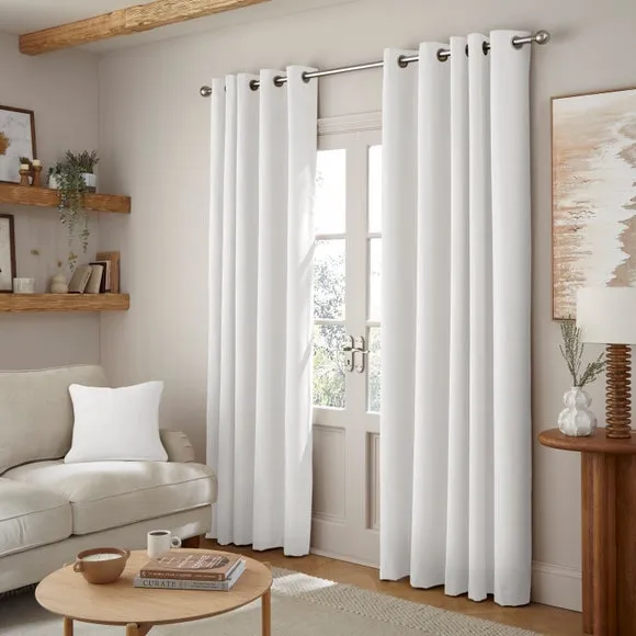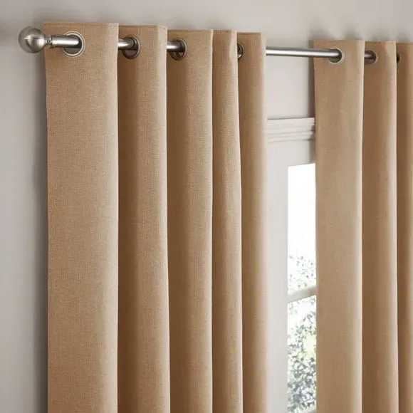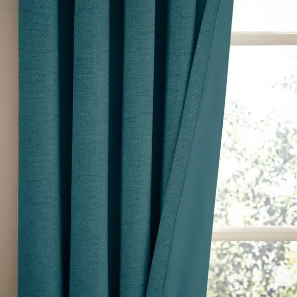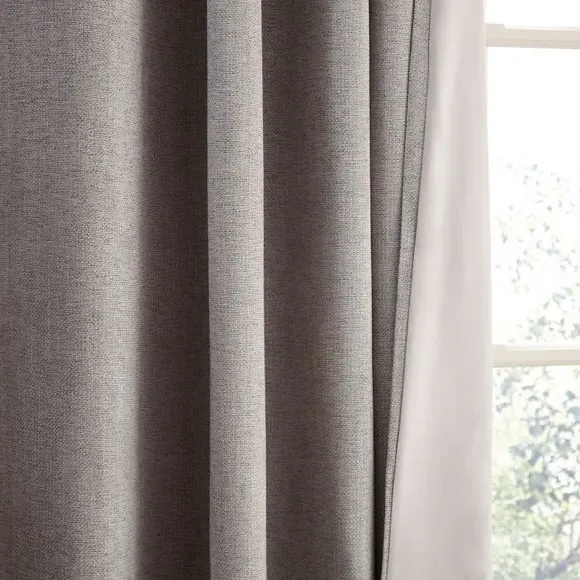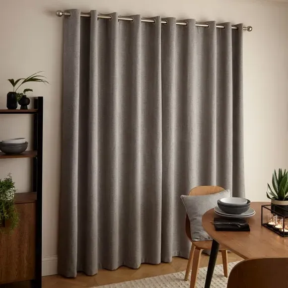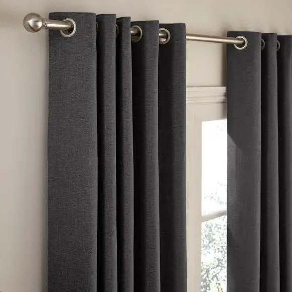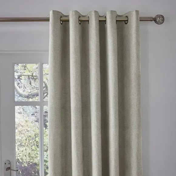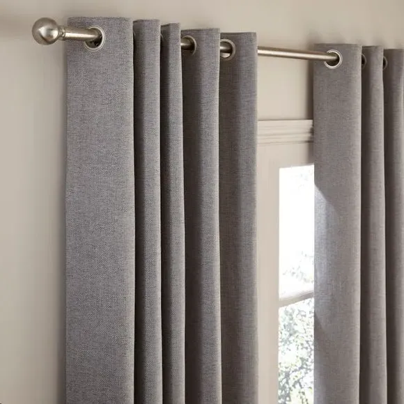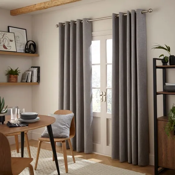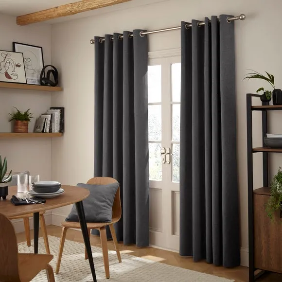 The thermal eyelet curtains offer insulation and privacy with their soft chenille fabric construction. The thermal lining blocks external heat in summer while preventing cool draughts in winter, maintaining comfortable indoor temperatures year-round. Each pair includes two panels with eyelet headers that glide smoothly across curtain poles for easy operation. The textured chenille material adds durability and visual appeal to any window treatment.