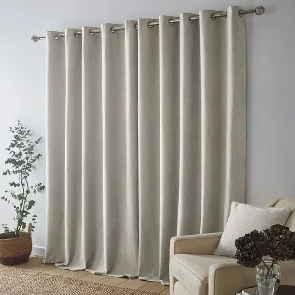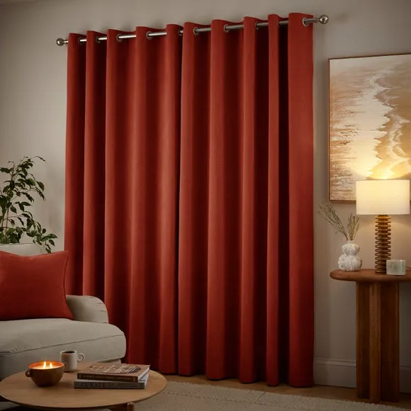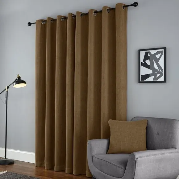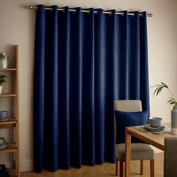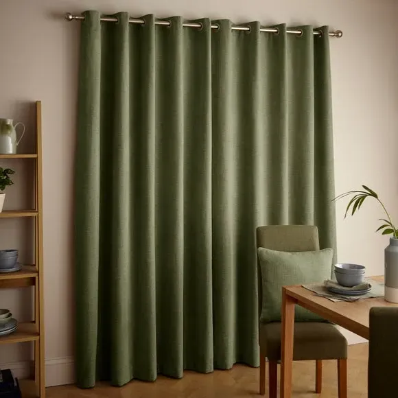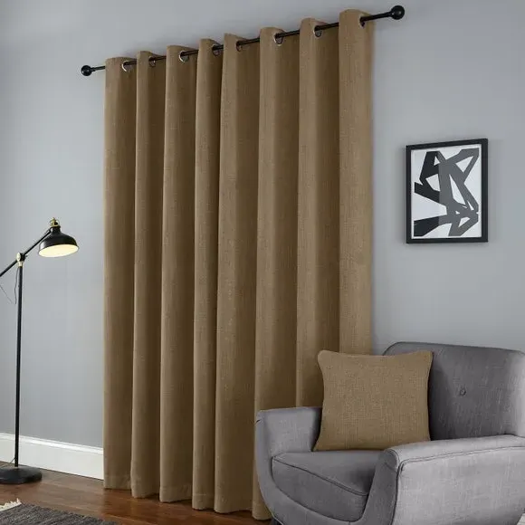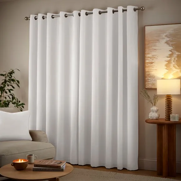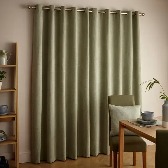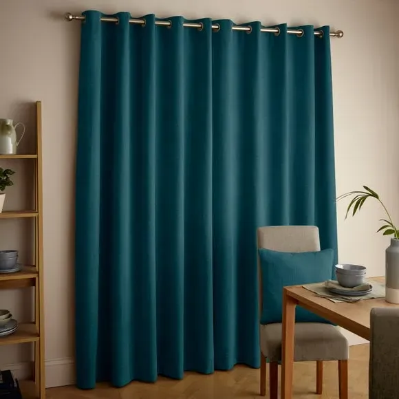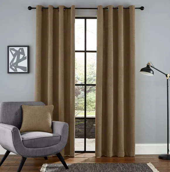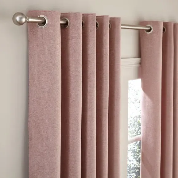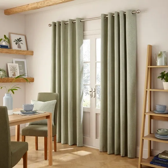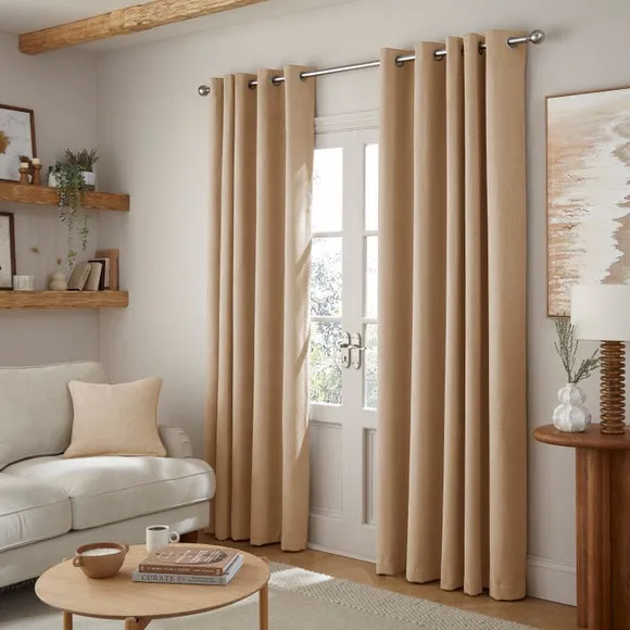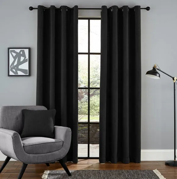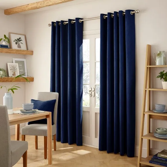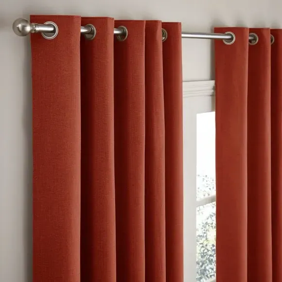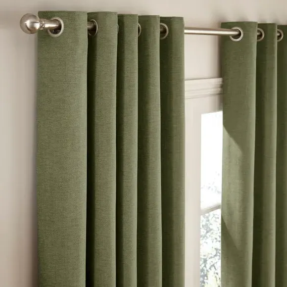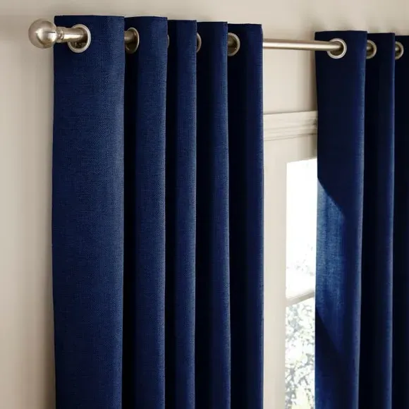 The thermal eyelet curtains offer insulation and privacy with their soft chenille fabric construction. The thermal lining blocks external heat in summer while preventing cool draughts in winter, maintaining comfortable indoor temperatures year-round. Each pair includes two panels with eyelet headers that glide smoothly across curtain poles for easy operation. The textured chenille material adds durability and visual appeal to any window treatment.