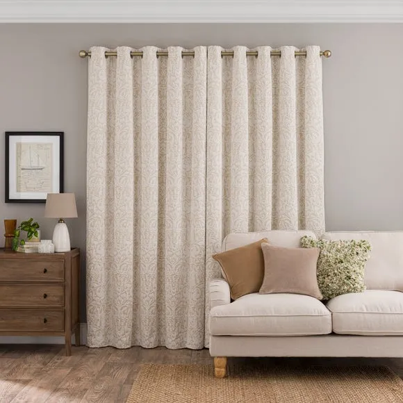 * 1 pair - includes 2 x curtain panels* Soft Chenille Jacquard* Brushed steel eyelet header* Thermal coated to trap heat* Lined curtains* Multiple sizes available The Alora Chenille eyelet curtains bring a touch of sophistication to any room with their soft chenille jacquard fabric and brushed steel eyelet header. These curtains not only enhance the aesthetic appeal of your space but also provide practical benefits with their thermal coating designed to retain heat. Available in a variety of sizes and chic colours, they effortlessly blend modern style with timeless elegance.