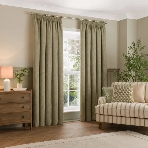 Home  /  Bedding & Textile  /  Curtains  /  Thermal Pencil Pleat Curtains - Pistachio, Twill