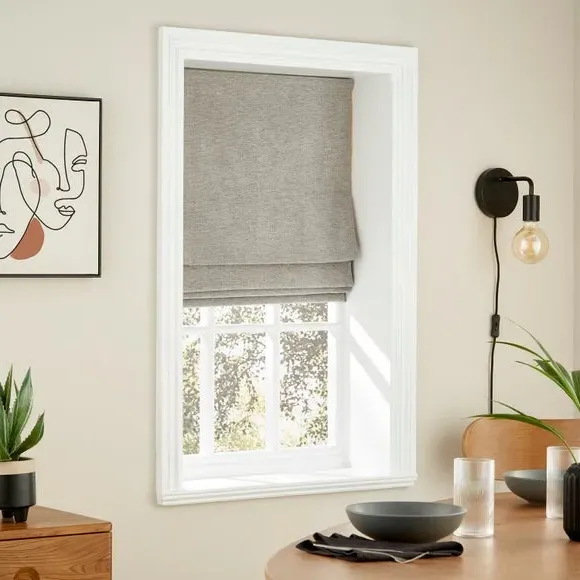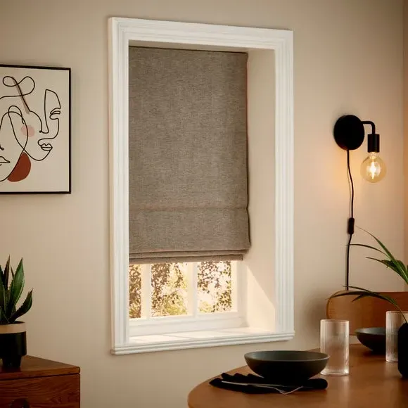 The Roman blind offers thermal insulation with its specialized lining that maintains comfortable temperatures year-round. Made from recycled materials, it features a classic fold design that provides privacy while allowing filtered light. The thermal backing keeps rooms cool in summer and warm in winter, while the included fixings ensure straightforward installation.