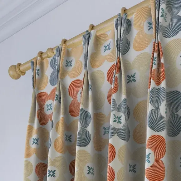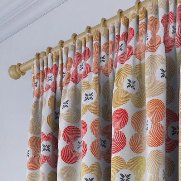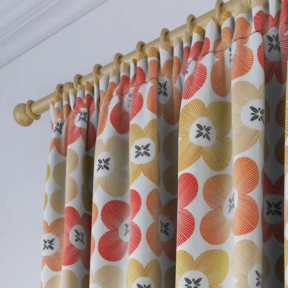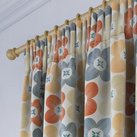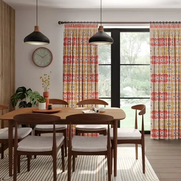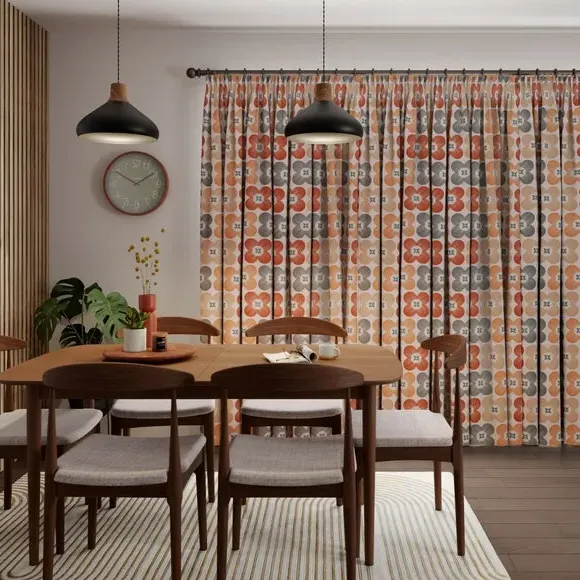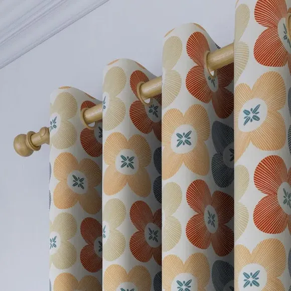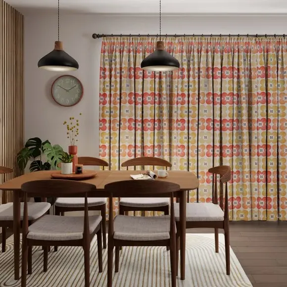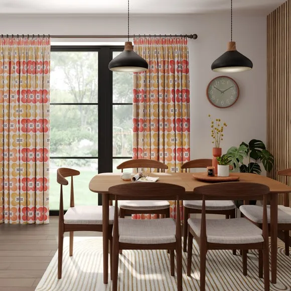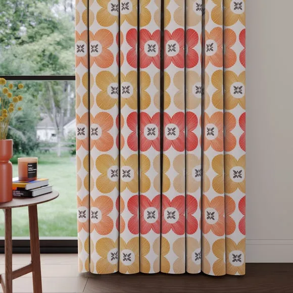 * High Quality 100% Cotton composition* Modern, scandi design in a range of vibrant colourways* Available in a selection of header and lining options* Coordinating Made to Measure and Made to Order items available to purchase separately A playful yet refined take on florals, the Elements Daisy curtains infuse Scandinavian-inspired geometry with the natural charm of a daisy motif. The clean, symmetrical design is a modern twist on traditional floral patterns, making these curtains an ideal addition to contemporary and minimalistic spaces alike. Woven from 100% high-quality cotton, they offer a breathable, soft, and natural finish while maintaining a durable and hardwearing structure that stands the test of time. The pure cotton composition ensures a lightweight yet substantial drape, providing both aesthetic appeal and practicality. Whether you’re looking to introduce subtle charm or a bold pop of colour, the range of vibrant hues and customisable header and lining options make it easy to tailor these curtains to your exact preferences. Please note: If your measured width is over 124cm your curtains will come with a fabric join to provide the full width required.