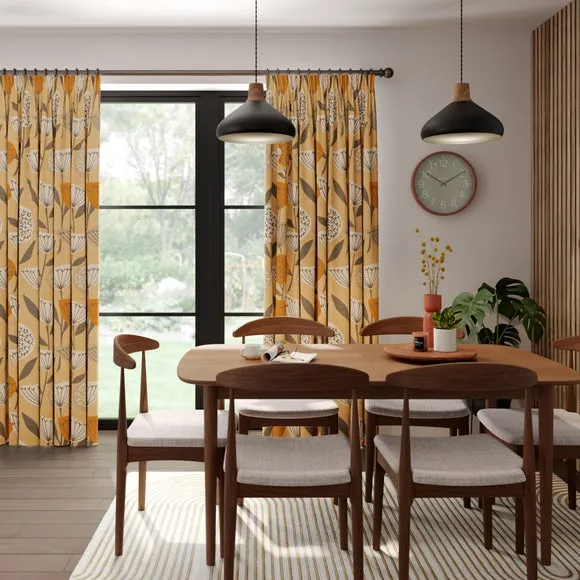* Resilient blended Cotton and Linen composition* Modern, scandi design in a range of vibrant colourways* Available in a selection of header and lining options* Coordinating Made to Measure and Made to Order items available to purchase separately Designed for those who appreciate both modern style and natural textures, the Elements Emmott curtains offer a sophisticated yet effortless aesthetic. The striking dandelion-printed floral pattern is balanced by a geometric structure, creating a Scandinavian-inspired design that feels fresh, contemporary, and versatile. Crafted from a premium blend of cotton and linen, these curtains combine the best of both fabrics—cotton’s softness and breathability with linen’s durability and textured charm. This natural composition makes them a perfect choice for those who love an organic, tactile feel in their interiors. Available in a stunning array of vibrant colourways, the Emmott curtains can be customised with a selection of header and lining options, ensuring a flawless fit for any space. Pair them with coordinating made-to-measure and made-to-order accessories to complete a cohesive and elevated look. Please note: If your measured width is over 124cm your curtains will come with a fabric join to provide the full width required.