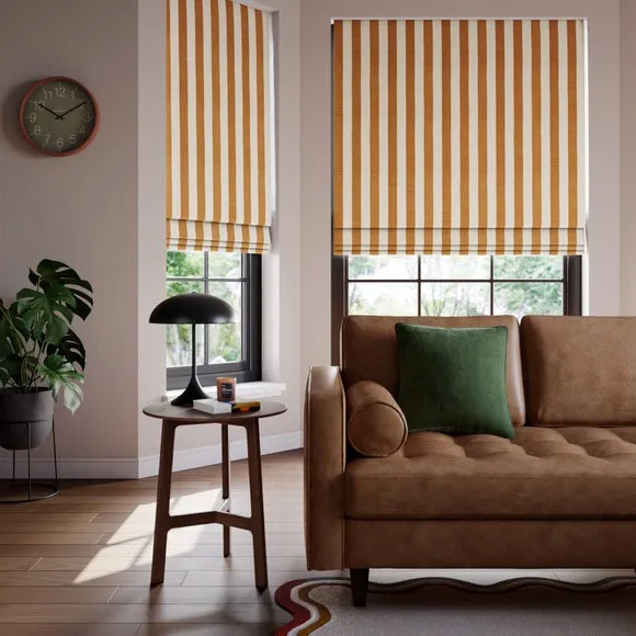 Striped Roman Blind - Ochre, Cotton Linen