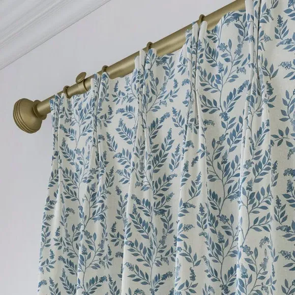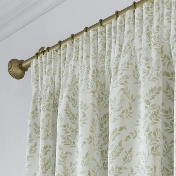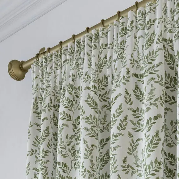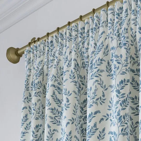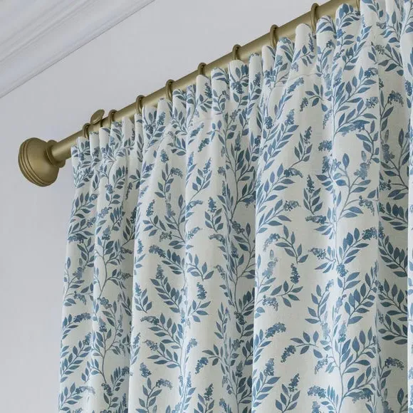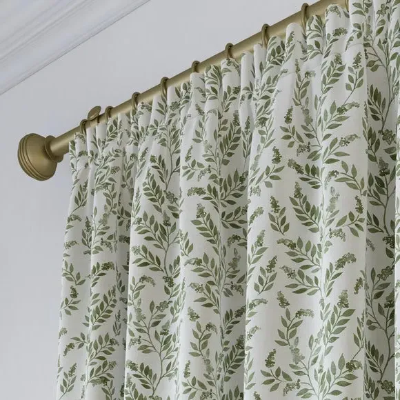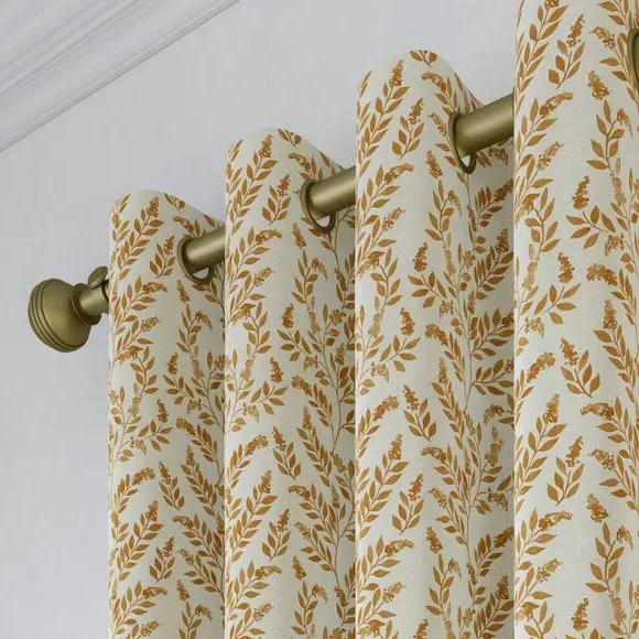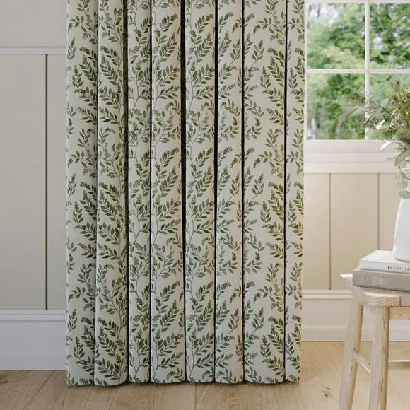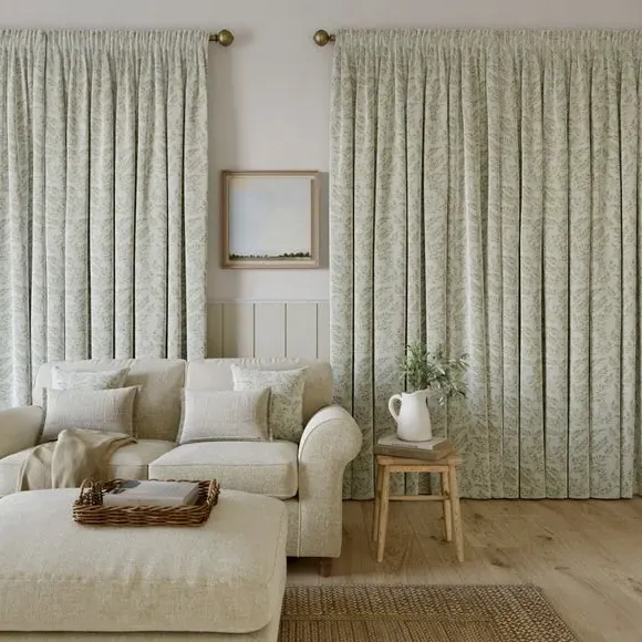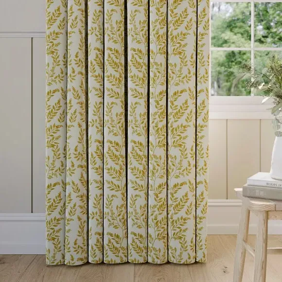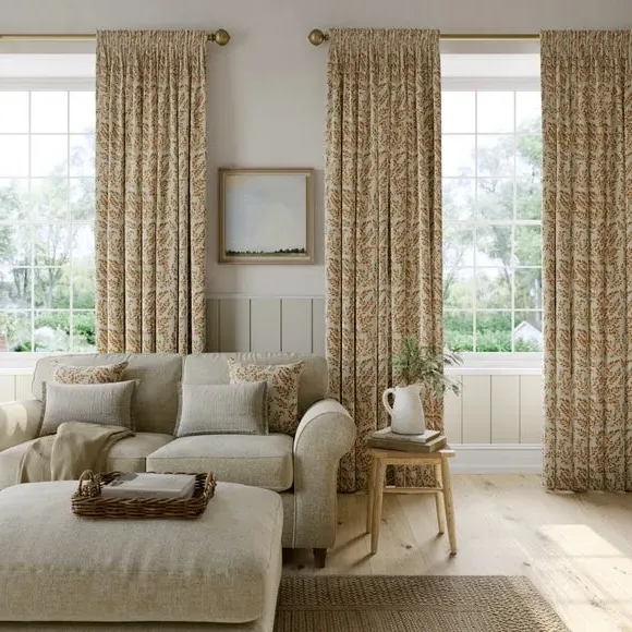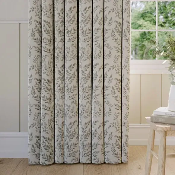 * Robust 100% Cotton composition with a linen-look finish* Floral design inspired by countryside views* Available in a selection of header and lining options* Coordinating Made to Measure and Made to Order items available to purchase separately Inspired by the picturesque charm of rural Bristol, Emily Bond infuses her designs with a rustic, farmhouse appeal. The Delia range, developed in collaboration with Dunelm, is crafted from a robust and durable 100% cotton base with a linen-look finish. Expertly made from breathable cotton, this range brings timeless sophistication to your home, designed to last. The luxurious heavy cotton composition ensures the fabric maintains its quality and hangs neatly without creasing. These made-to-measure curtains are available in a variety of striking colourways, perfect for complementing any interior décor scheme. With multiple header options, including pencil pleat, eyelet, and pinch pleat, you can achieve a perfectly tailored look for your space. Choose from regular, blackout, or thermal linings for enhanced functionality, ensuring both comfort and privacy. Designed to be hardwearing for busy homes, these curtains offer timeless style and can be paired with coordinating Made to Measure items for a seamless, luxurious finish.**Please note:**You measure for pinch pleat curtains in the same way as pencil pleat curtains.**Please note:** If your measured width is over 124cm your curtains will come with a fabric join to provide the full width required.