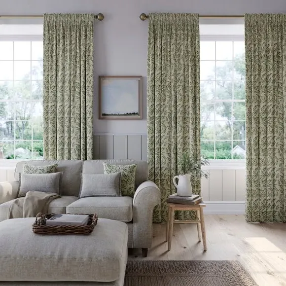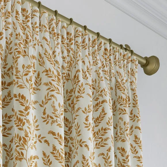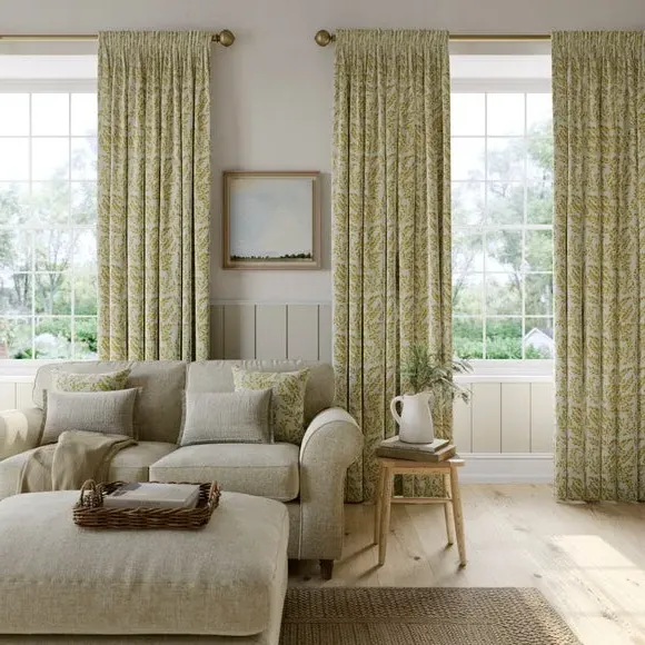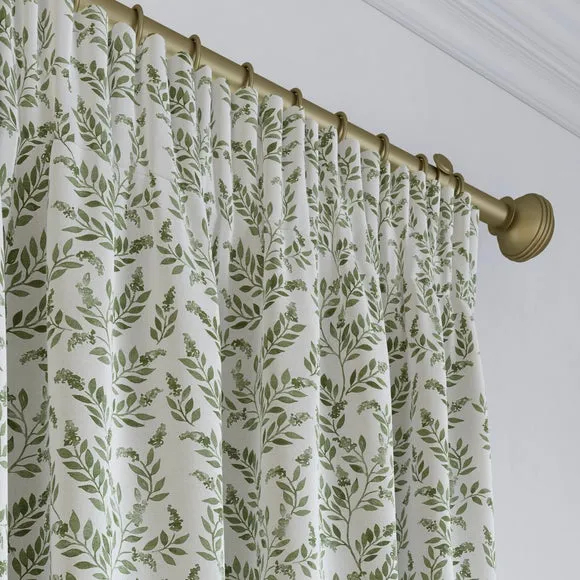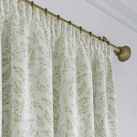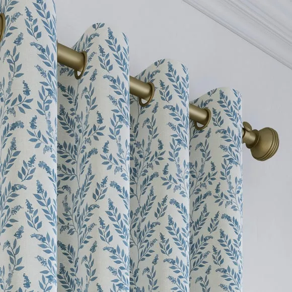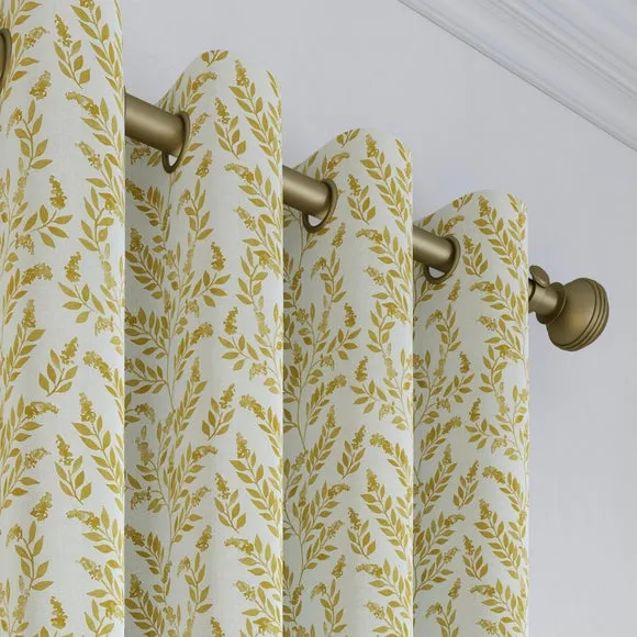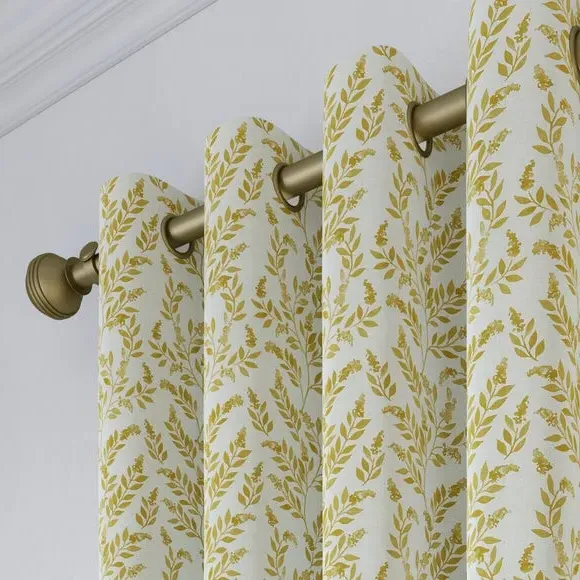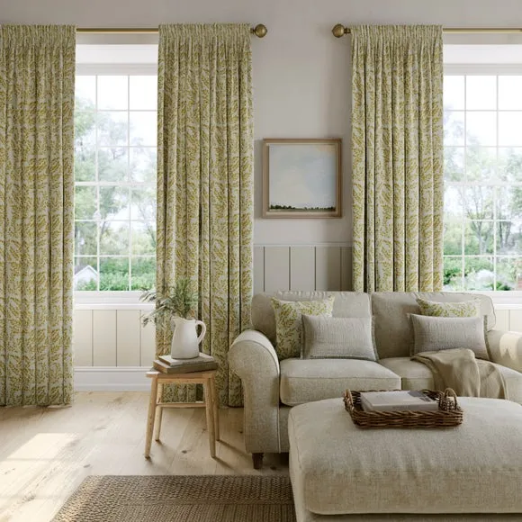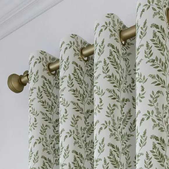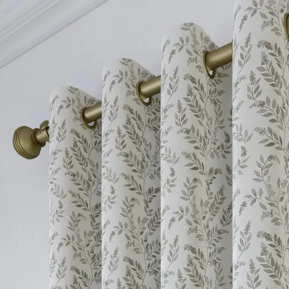The curtains feature a robust 100% cotton composition with a linen-look finish, displaying a floral design inspired by countryside views. The heavy cotton construction ensures the fabric maintains its quality and hangs neatly without creasing, while multiple header options including pencil pleat, eyelet, and pinch pleat allow for a tailored appearance. Available with regular, blackout, or thermal linings for enhanced functionality and privacy. The durable cotton base provides breathable comfort and long-lasting performance.