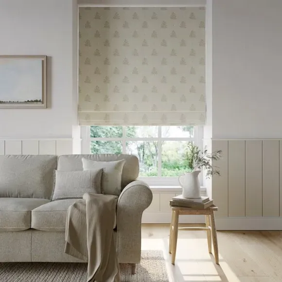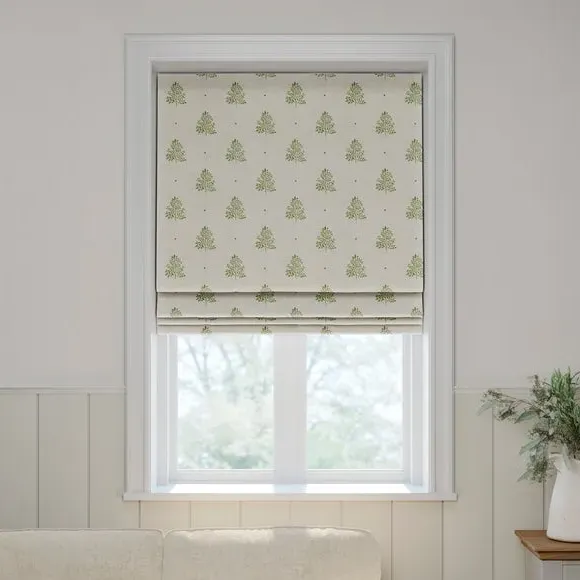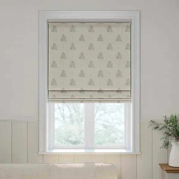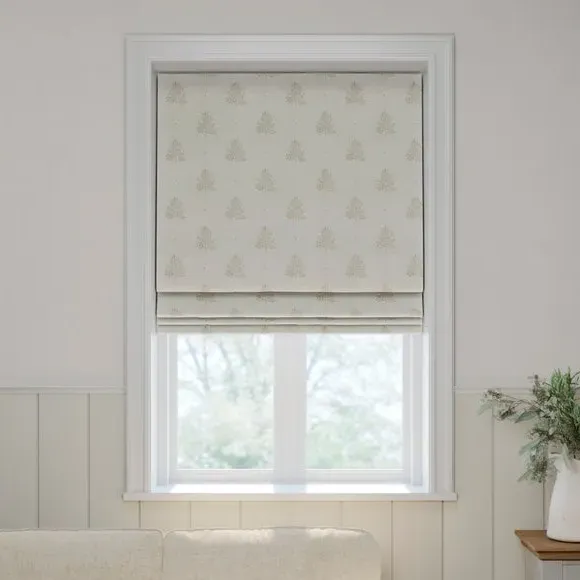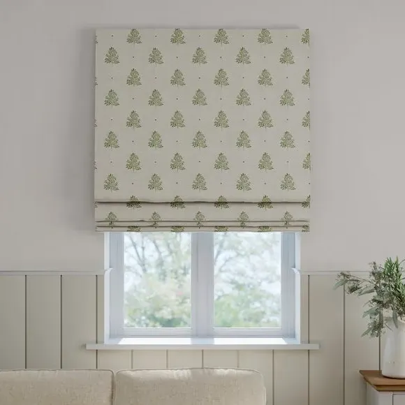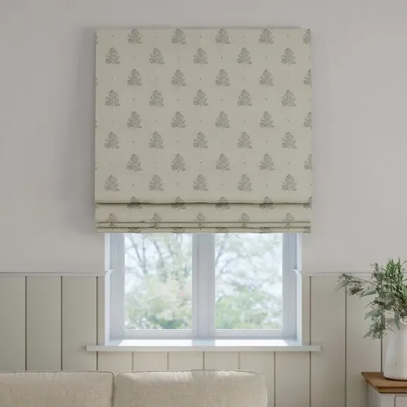 * Robust 100% Cotton composition with a linen-look finish* Block print Tree design inspired by nature* Choose from 3 linings* Select your fitting type* Pick a side for the operating chain* Coordinating Made to Measure and Made to Order items available to purchase separately Inspired by the rustic charm of rural Bristol, Emily Bond brings a farmhouse aesthetic to her designs. The Zachary range, created in collaboration with Dunelm, is crafted from a sturdy and durable 100% cotton base with a linen-look finish. Customize your blinds with a choice of three lining options—regular, blackout, or thermal—tailored to your needs for light control and insulation. Choose your preferred fitting type and chain position for easy operation and a perfect fit. Pair with coordinating Made to Measure items for a cohesive, polished look throughout your home.**Choosing your lining:*** Blackout provides minimal light disturbance in your home making it perfect for bedrooms.* Thermal helps to keep the warmth in and the cool air out meaning it’s great for family rooms or lounges.* Our Standard Lining is perfect if you like the glow of natural light whilst your curtains are closed whilst still maintaining your privacy.**Choosing your fitting type:*** Inside the recess: this gives a tidy, snug finish as it’s made to fit your window exactly.* Outside the recess: this option is great if you don’t want the blind to be visible from the outside when it’s drawn up.**Choosing which side you’d like the operating chain:*** Think about where your blind will be situated and what furniture may be near it – choose the side that is easier for you to access.**Child Safety:**We add clips to the back of our roman blinds to attach the cords to the fabric. They also double up as a child safety feature. If pressure is exerted the clips will detach to prevent the risk of strangulation. If the clips detach accidentally during normal use, they can be easily re-clipped back into place.**Please note:** If your measured width is over 130cm your blinds may come with a fabric join to provide the full width required.