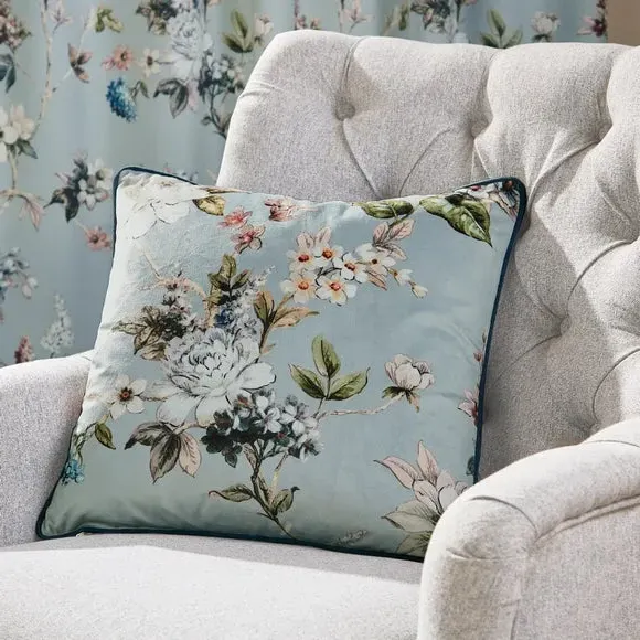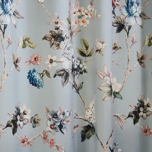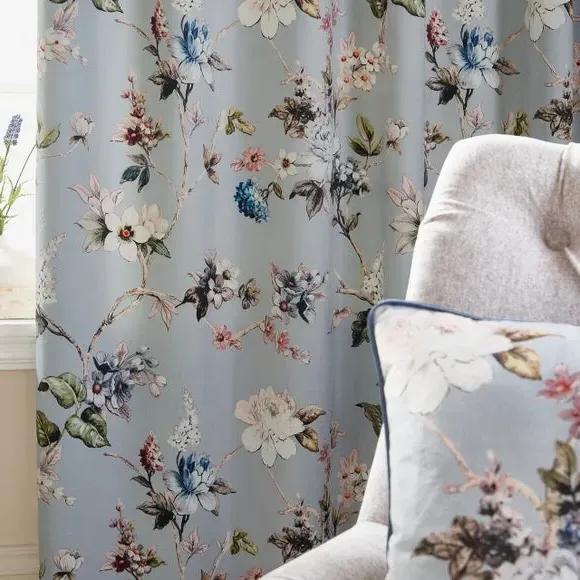 * Includes 2 x Curtain Panels* Brought to you by Holly Willoughby* Gorgeous, Elegant Floral Design* Made from 100% Recycled Polyester - Velvet Look & Feel* Fully Lined - Aids Privacy & Warmth Live in modern luxury with these elegant, digitally-printed curtains - ready-made for your convenience. Featuring a fresh, hand-painted floral design in beautiful tones of blues and greens on a blue background, these curtains are made from 280gsm velvet 100% polyester and are fully lined, accommodated by an elegant drape.