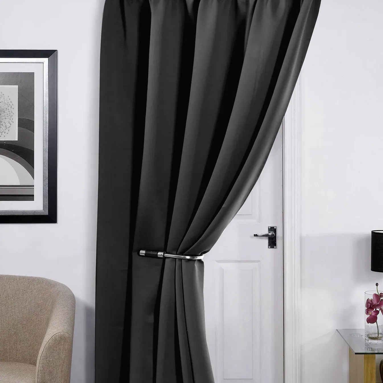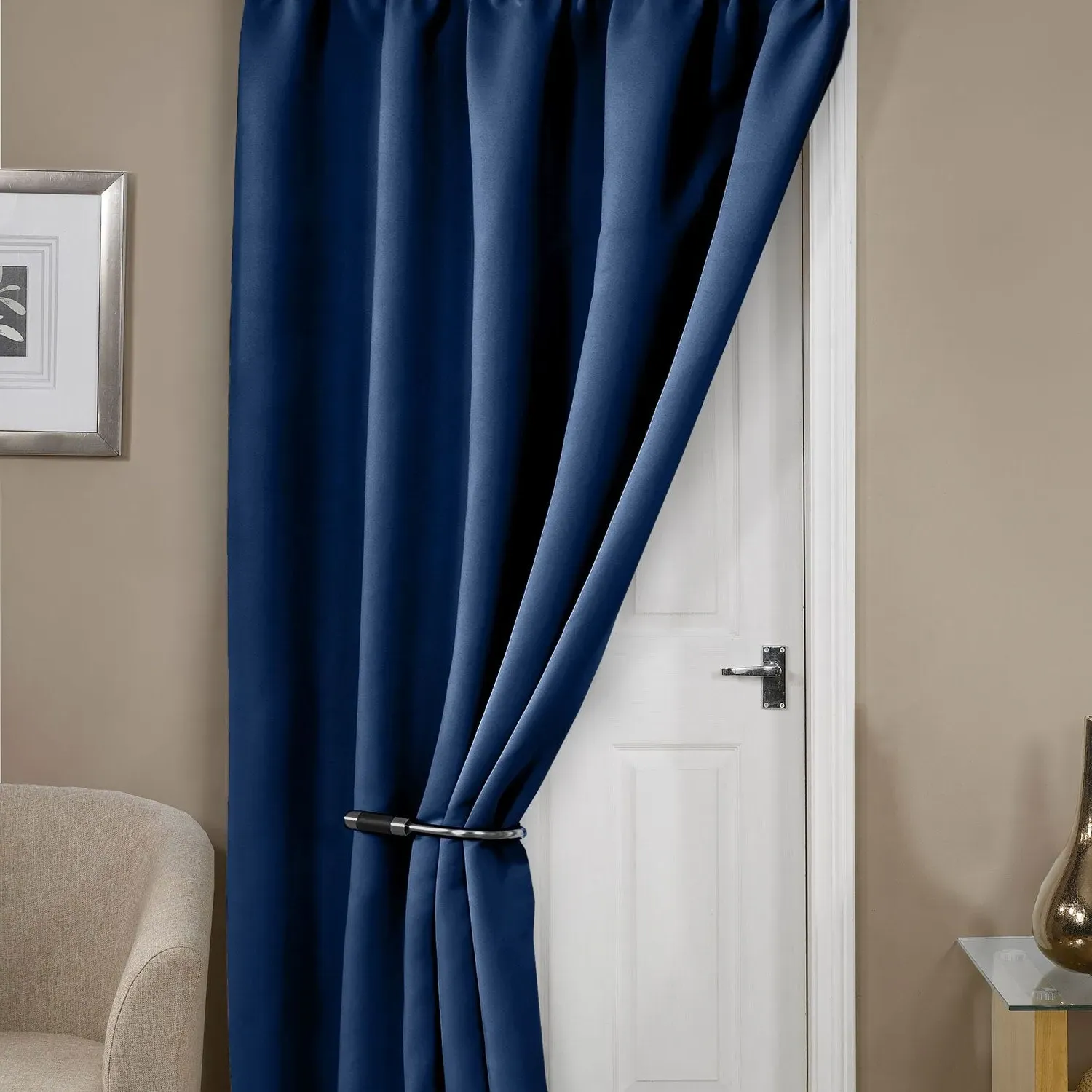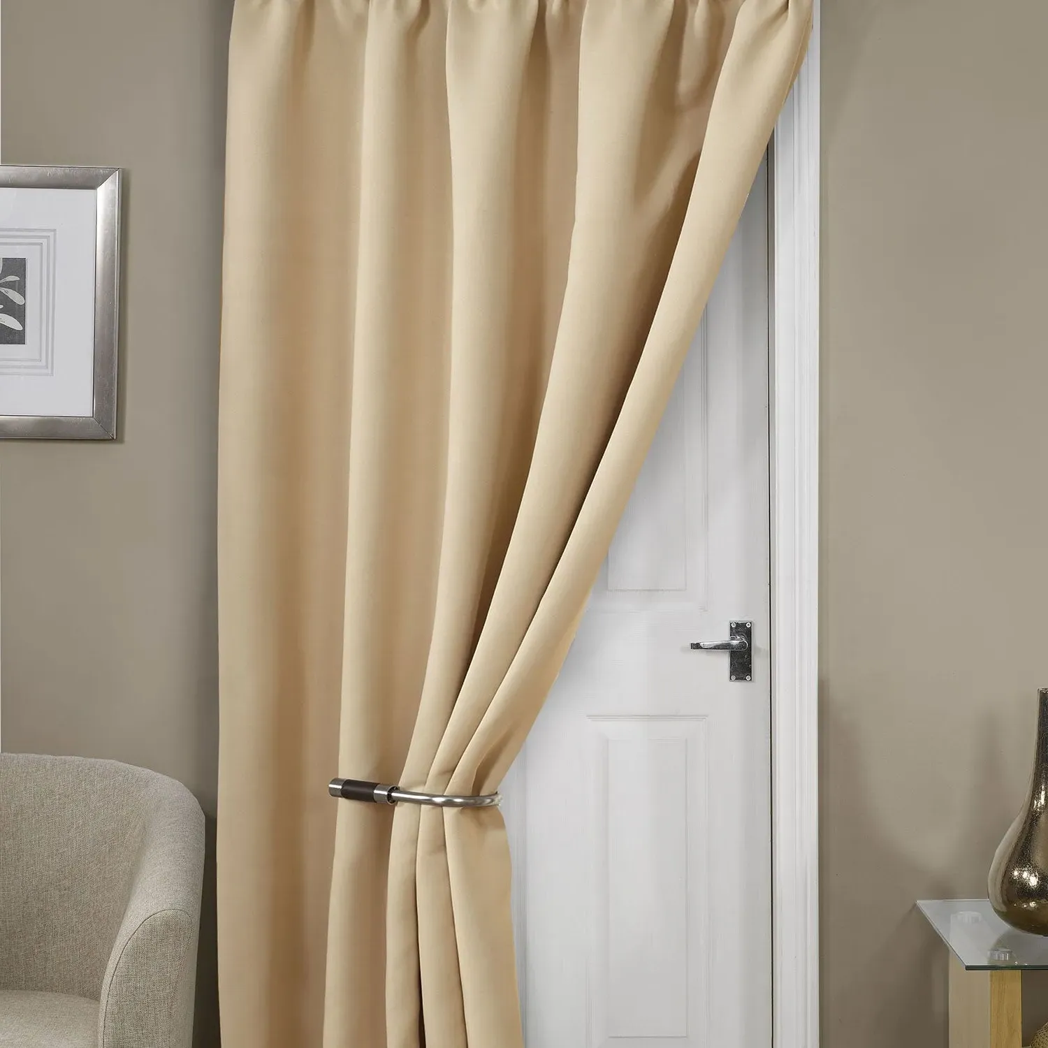 Experience peace and quiet with the Cali Blackout Door Curtain. The thermal lined door curtain not only filters light and heat but also reduces noise for a blissful night's sleep. Made from 100% polyester, they are durable and easy to care for with machine washability. The high-quality thermal lining keeps your room warm in winter and cool in summer without the need for additional lining.