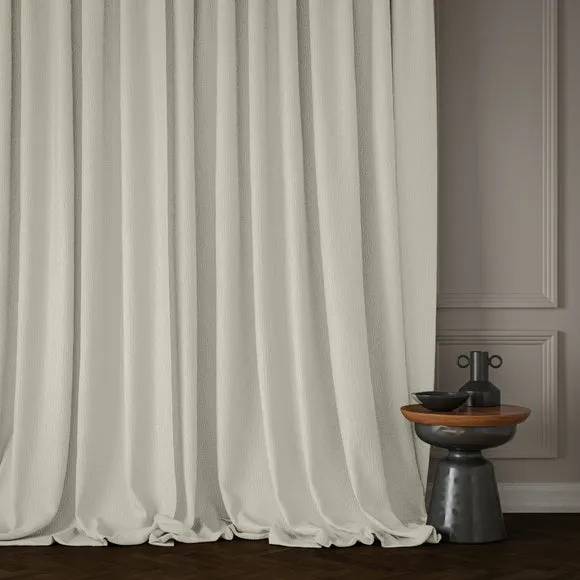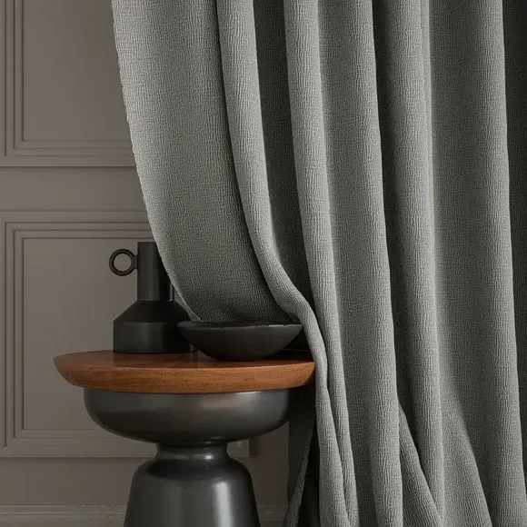 The curtains feature a textured weave design on premium polyester composition, offering durability with a soft and elegant appearance. The plain weave construction provides versatility across different interior styles, while the made-to-measure service ensures a tailored fit. Multiple header and lining options allow customization to suit specific requirements, and the polyester material delivers long-lasting performance with easy maintenance.