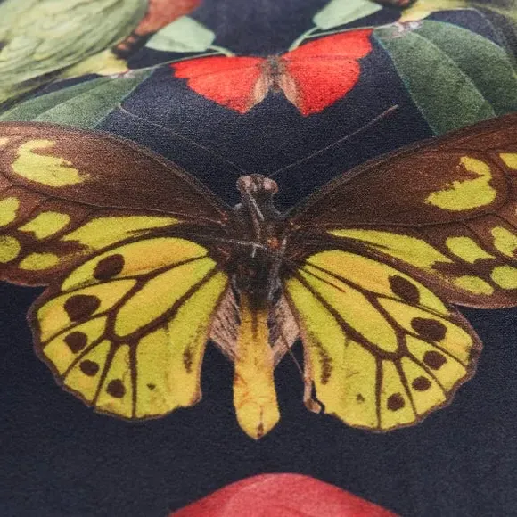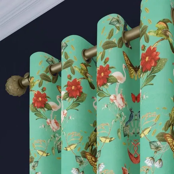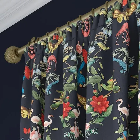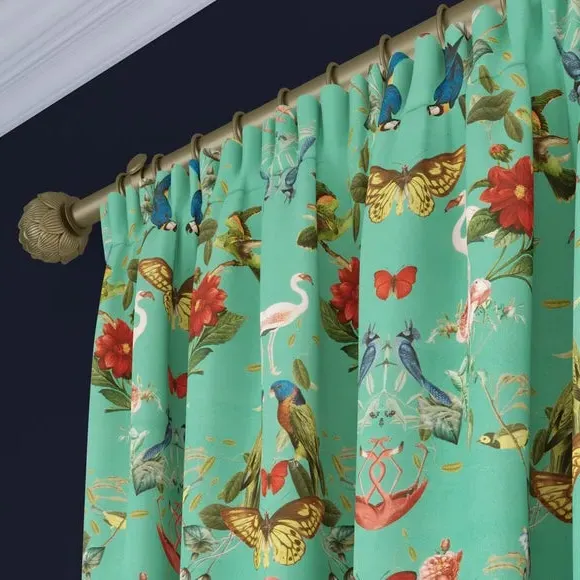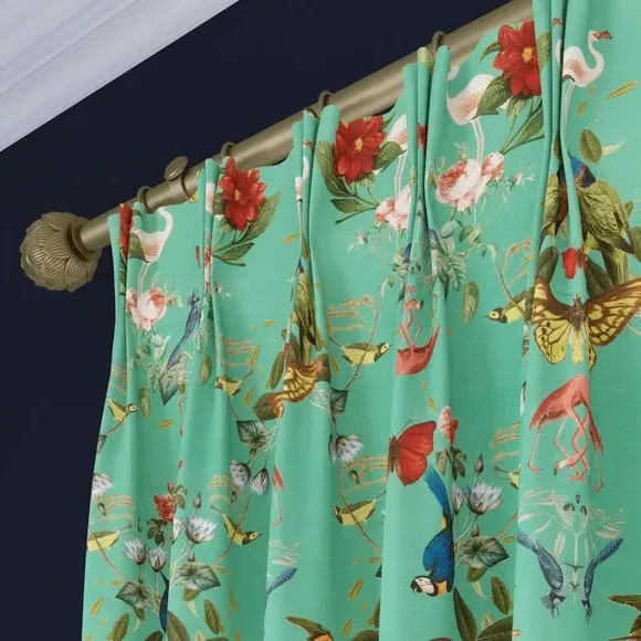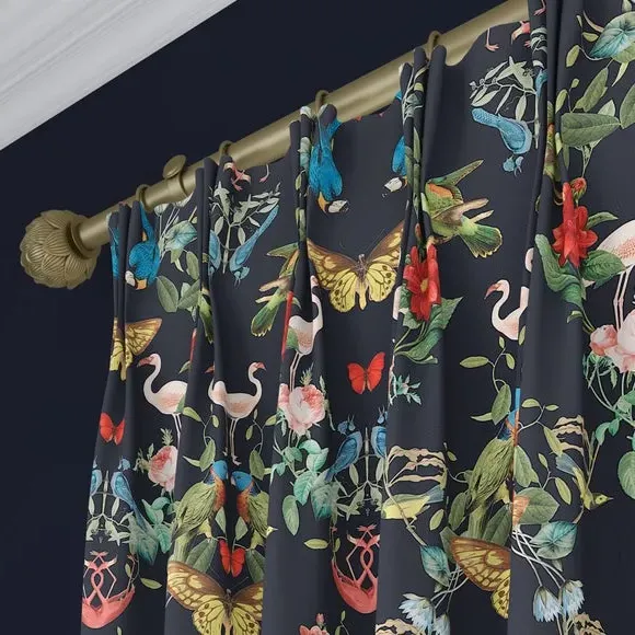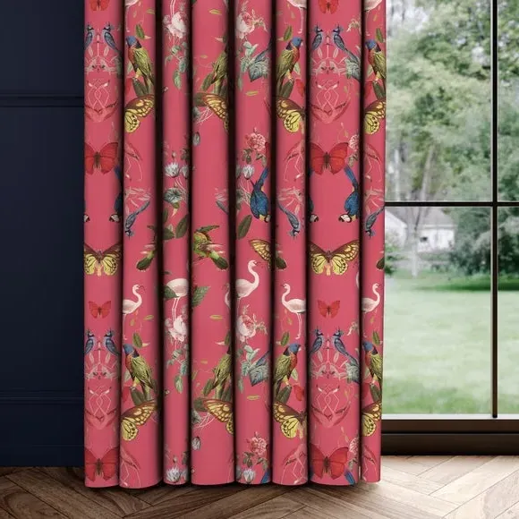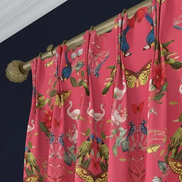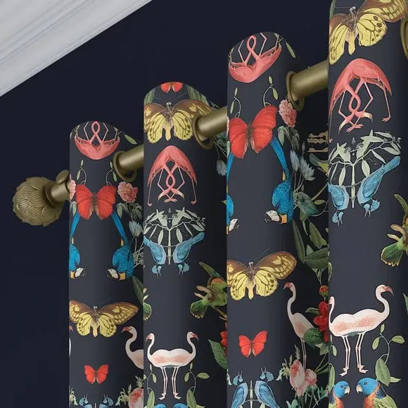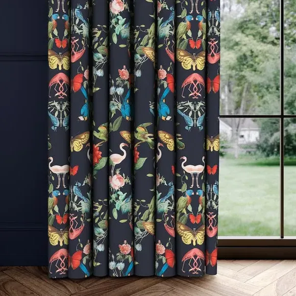 The Made to Measure Curtains showcase mesmerizing botanical designs featuring colorful butterflies and tropical birds on 100% polyester fabric. Created to your precise measurements, these curtains offer dramatic maximalist styling with heavy composition quality. The bespoke tailoring includes customizable headers and linings, while the polyester construction provides excellent durability and fade resistance.