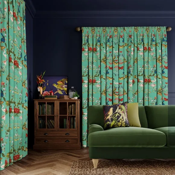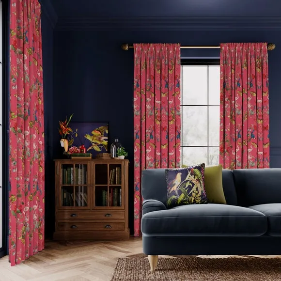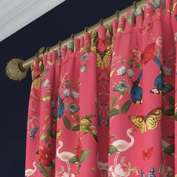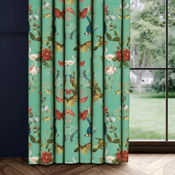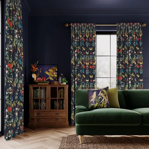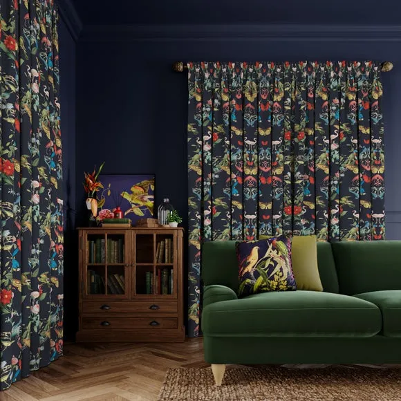 In collaboration with the Natural History Museum* Premium heavy composition* Maximalist design* Coordinating Made to Measure and Made to Order items available to purchase separately Infuse your home with the vibrant beauty of nature using the Tropical Kaleidoscope Made-to-Measure Curtains, part of the Natural History Museum Collection. This 100% polyester fabric showcases a mesmerising botanical design with brightly colored butterflies and tropical birds. Custom-made to your exact measurements, these curtains offer a dramatic, maximalist aesthetic perfect for statement interiors. With a variety of headers and linings to choose from, these bespoke curtains provide the perfect blend of practicality and artistic flair. Natural History Museum x Dunelm From the intricate pattern of a butterfly’s wing to the petal formation of a flower, symmetry is everywhere in nature. In the Kaleidoscope collection, elements from nature collide to create mesmerising abstract shapes and mirrored compositions. Brimming with detail and pattern, this dizzying journey uses colour from brightly coloured butterflies and tropical birds on a rich background for a dramatic look.© The Trustees of the Natural History Museum, London 2025. All Rights Reserved. Please note: You measure for pinch pleat curtains in the same way as pencil pleat curtains.