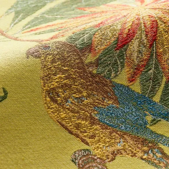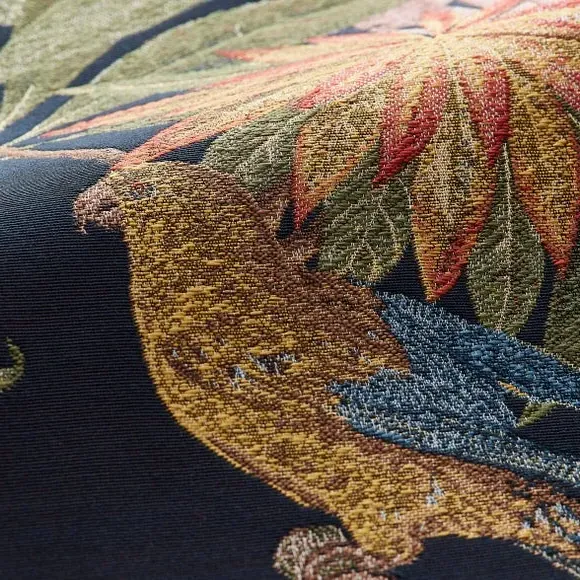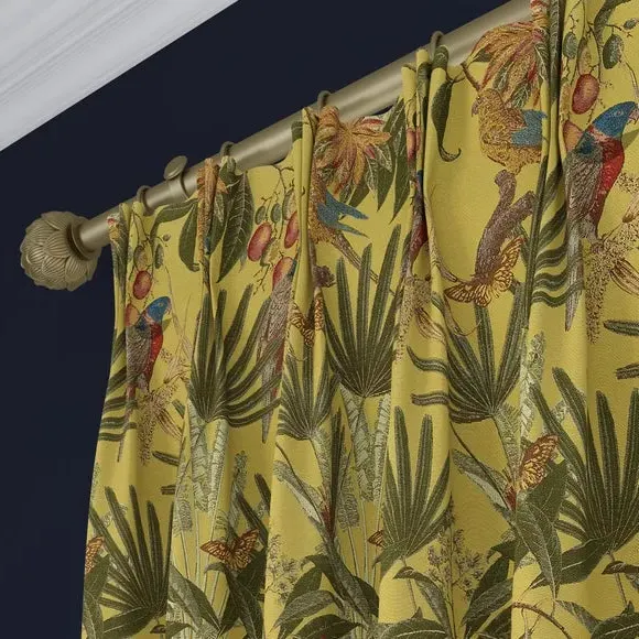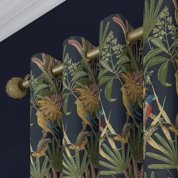 The curtains feature tropical birds, butterflies and lush palms in a maximalist design with premium heavy composition fabric. Custom-made for a precise fit, they offer multiple header and lining options to suit your requirements. The 100% polyester construction provides durability while the bold tropical motifs add vibrant character to any space.