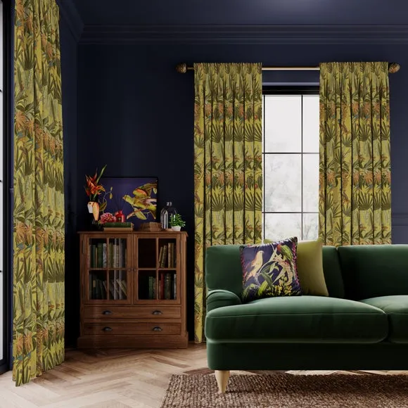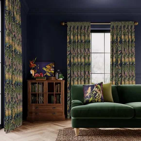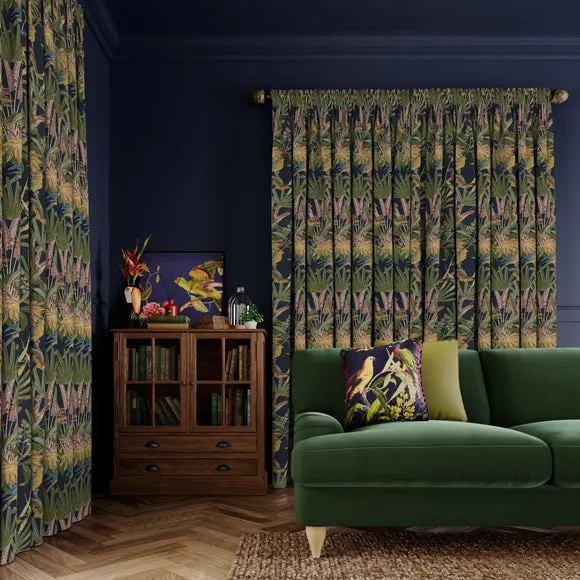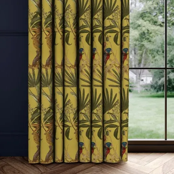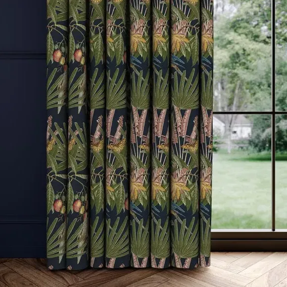 In collaboration with the Natural History Museum* Premium heavy composition* Maximalist design* Coordinating Made to Measure and Made to Order items available to purchase separately Add a bold, exotic touch to your home with the Tropical Treasures Made-to-Measure Curtains, part of the Natural History Museum Collection. Featuring tropical birds, plants, and fruits against a striking background, this 100% polyester fabric celebrates the vibrancy of tropical ecosystems. Custom-made for a perfect fit, these curtains are available with a selection of headers and linings to suit your needs. Ideal for creating a warm, summery ambiance, these bespoke curtains bring the beauty of the tropics into your living space. Natural History Museum x Dunelm Featuring a combination of colourful tropical birds and exquisitely detailed butterflies hidden amongst lush tropical palms, the Tropical Treasures collection has adopted some of the beautiful, historical artwork held within the Museum’s archives to create a warm and vibrant scene. A celebration of some of the more exotic species from tropical lands, this collection is perfect for creating a bold statement with a wild, summery feel.© The Trustees of the Natural History Museum, London 2025. All Rights Reserved. Please note: You measure for pinch pleat curtains in the same way as pencil pleat curtains.