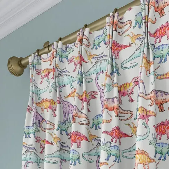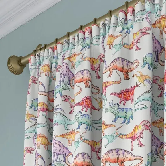 The curtains feature vibrant dinosaur illustrations with bold, colorful designs that bring prehistoric creatures to life. Made from 100% cotton composition, they provide soft and breathable comfort while maintaining durability. Custom-made to your specifications, they are available with various headers and linings to ensure a precise fit. The cotton fabric offers easy care and long-lasting color retention.