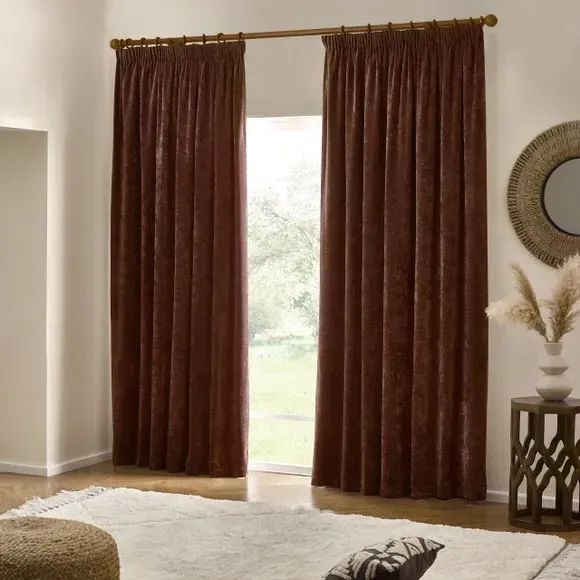 * Includes 2 x Panels* Sophisticated, Relaxed Look & Design* Perfect Weighted Drape* Made from Chenille Velvet (100% Polyester)* Available in Multiple Colourways & Sizes Add a stylish flair to your space with the Yard Heavy Chenille Pencil Pleat Curtains. Offering a sophisticated yet relaxed look, these curtains are crafted from sumptuous chenille velvet and provide the perfect weighted drape. Available in a multitude of earthy, nature-inspired colourways, the Yard Heavy Chenille Pencil Pleat Curtains are guaranteed to upgrade your home.