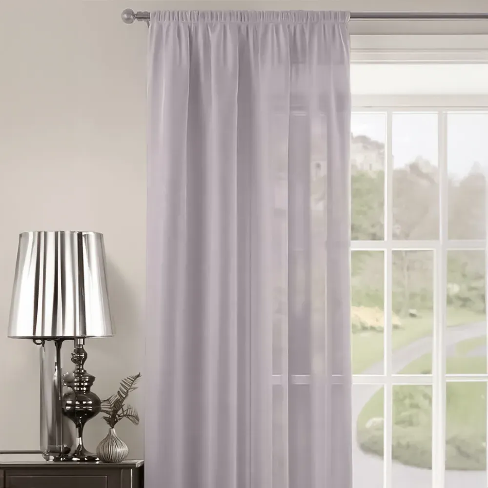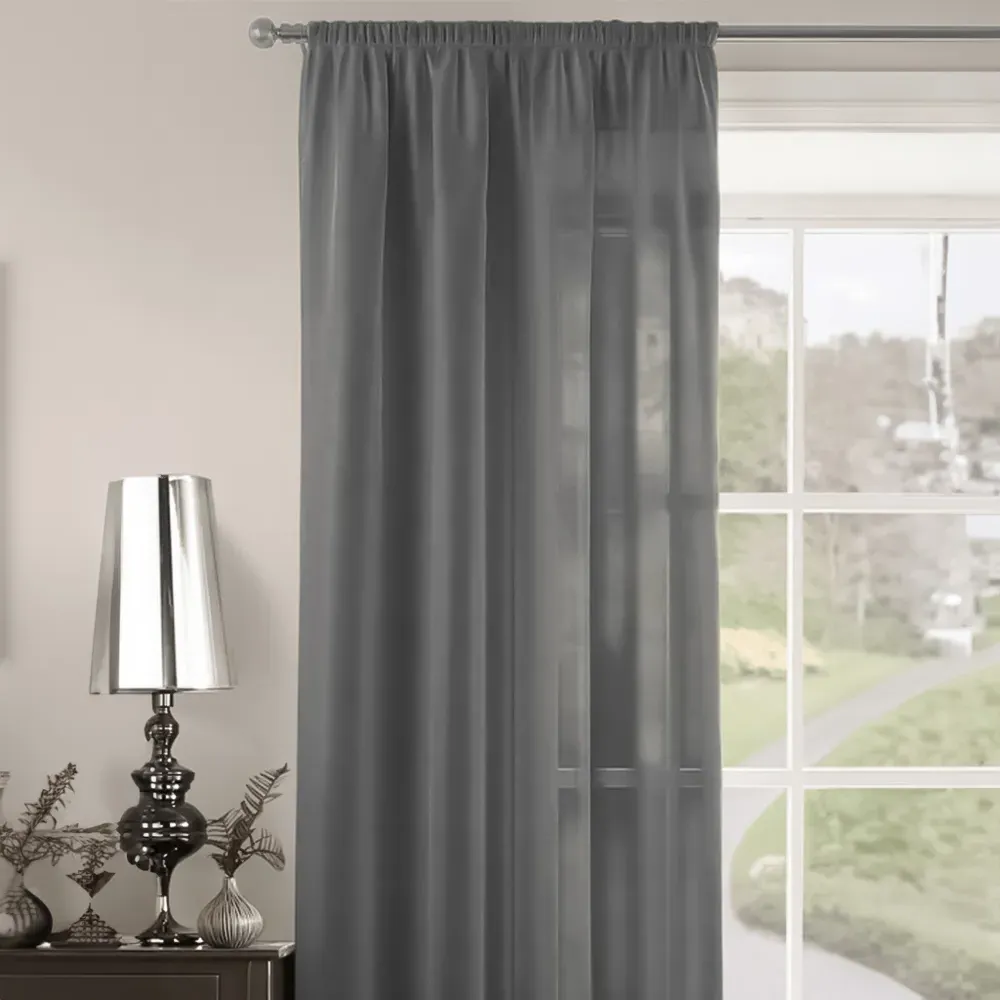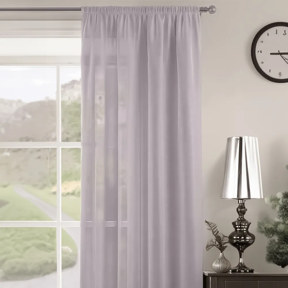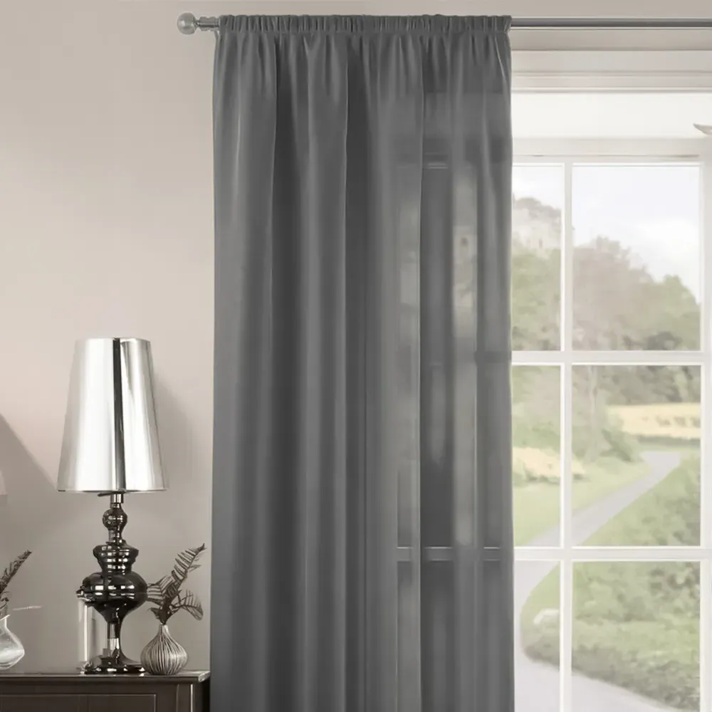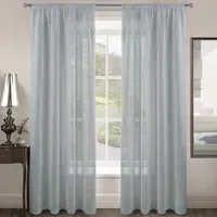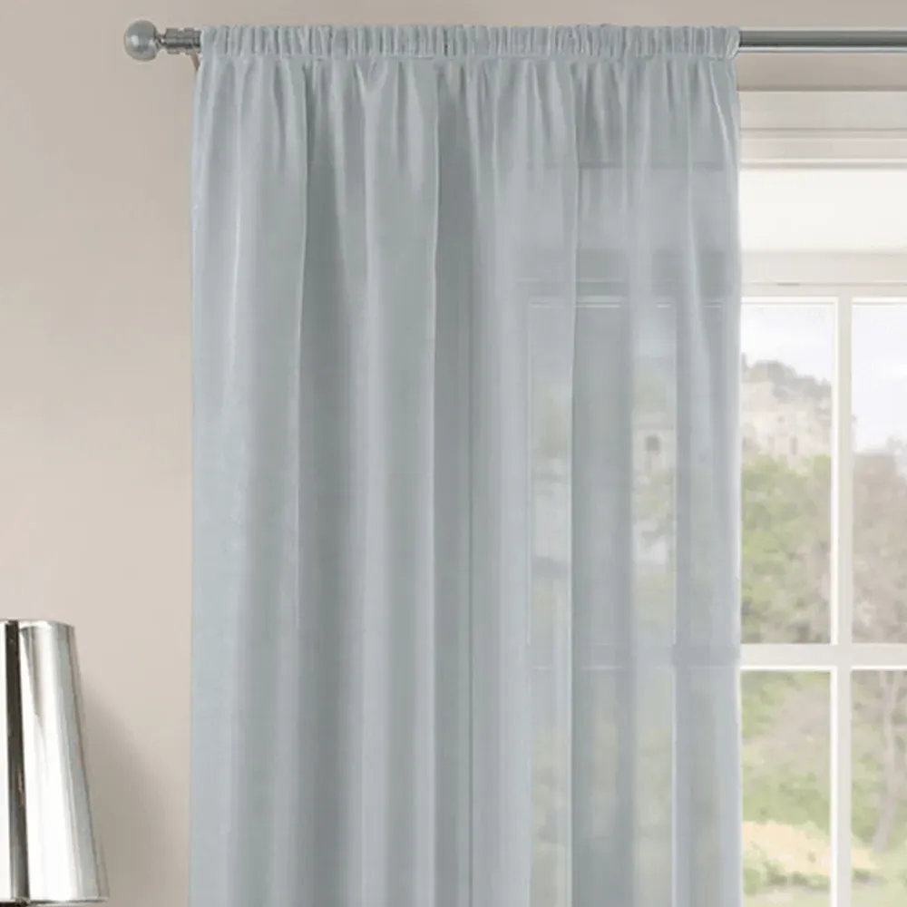 The Riva Plain Slot Top Voile Panel Curtain offers soft light filtration with its translucent voile fabric in a calming duck egg blue. Crafted from 100% durable polyester, it provides easy care maintenance while the slot top design allows simple installation on standard curtain rods. The smooth polyester construction ensures machine washable convenience, while the voile weave gently diffuses natural light throughout your space. W150 x H122 cm.