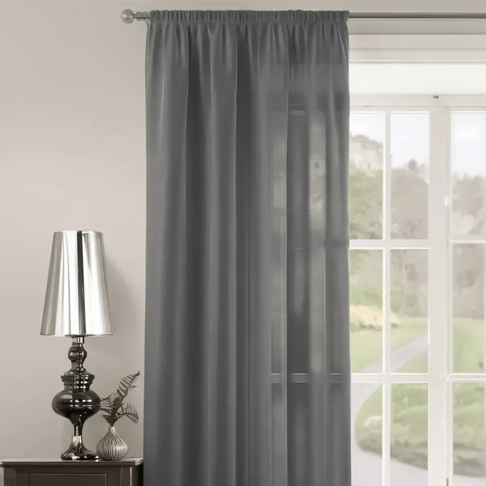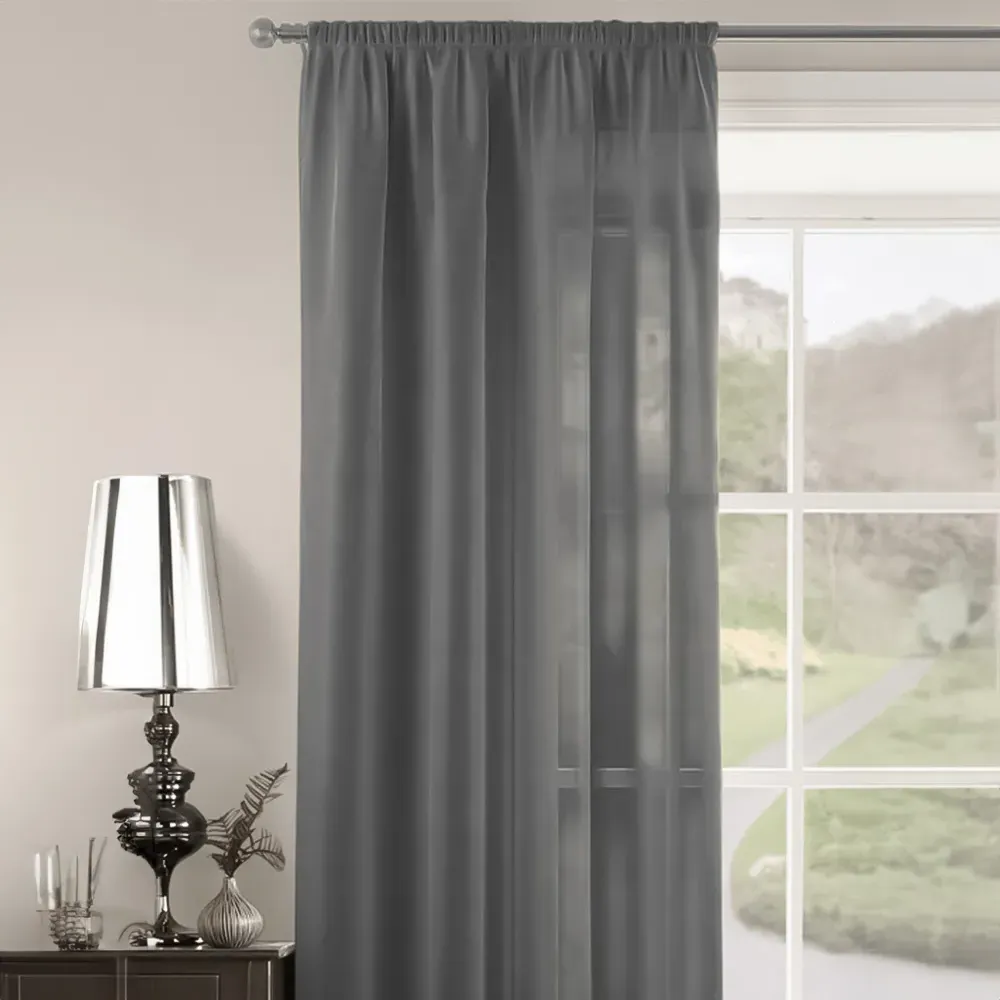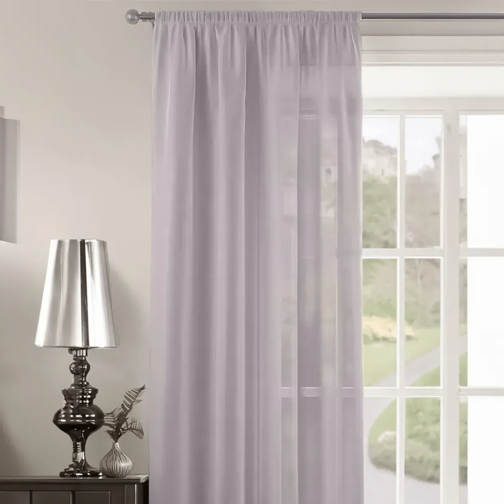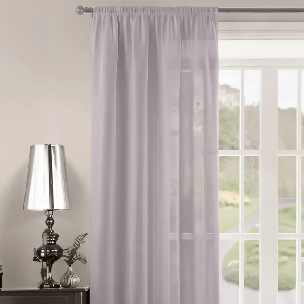The Riva Plain Slot Top Voile Panel Curtain offers soft light filtration with its translucent voile fabric in a calming duck egg blue. Crafted from 100% durable polyester, it provides easy care maintenance while the slot top design allows simple installation on standard curtain rods. The smooth polyester construction ensures machine washable convenience, while the voile weave gently diffuses natural light throughout your space. W150 x H122 cm.