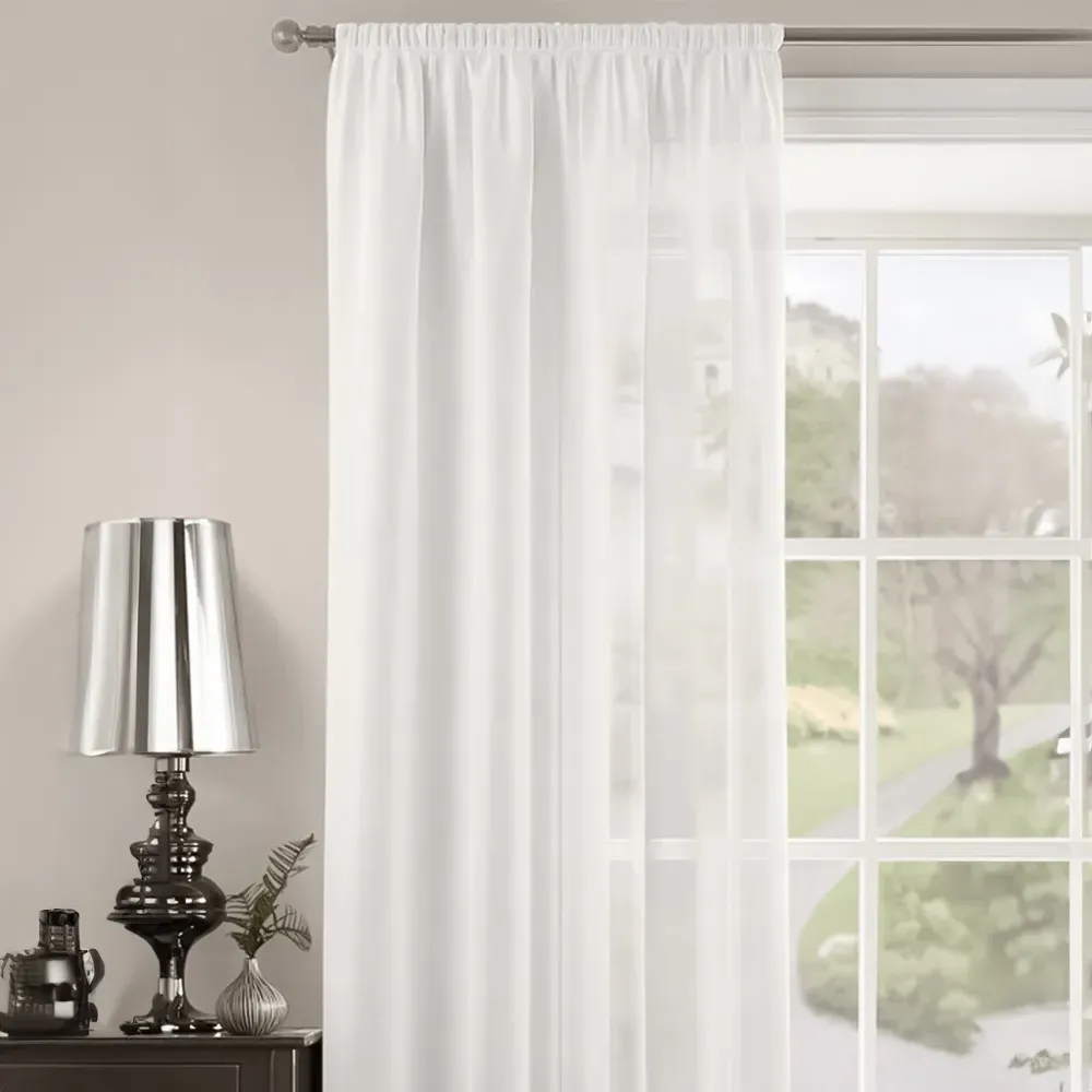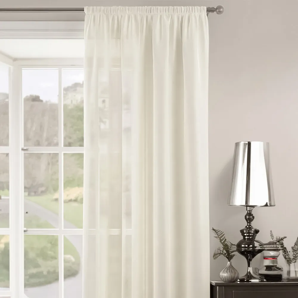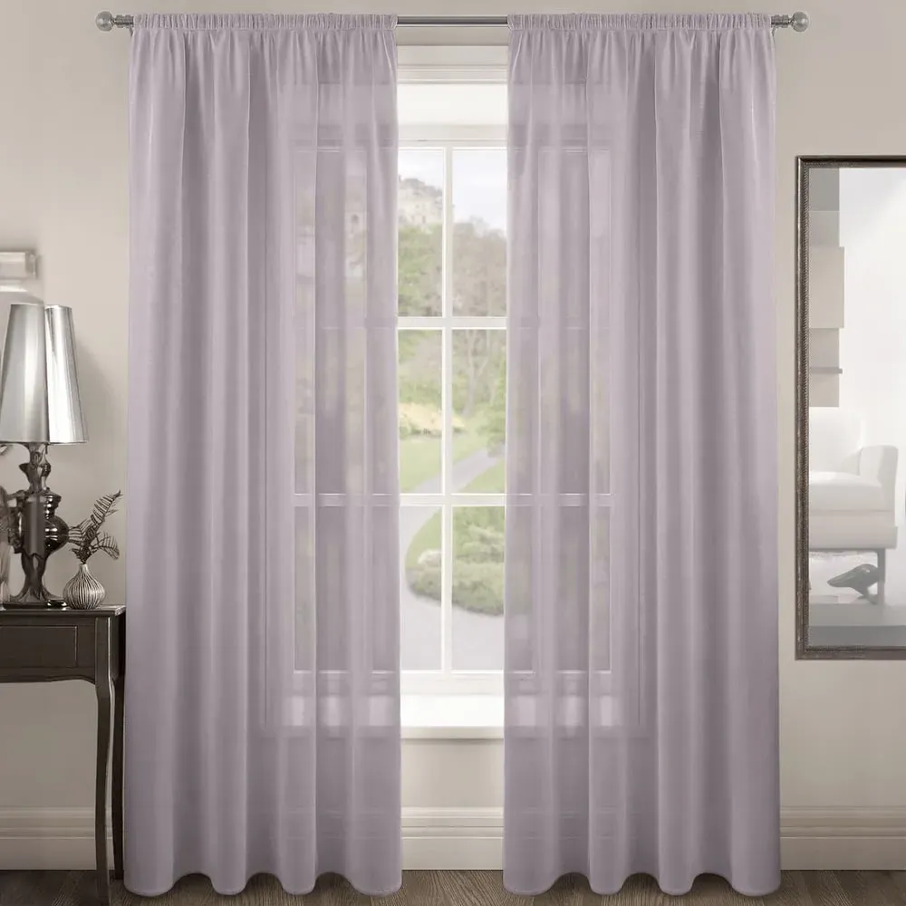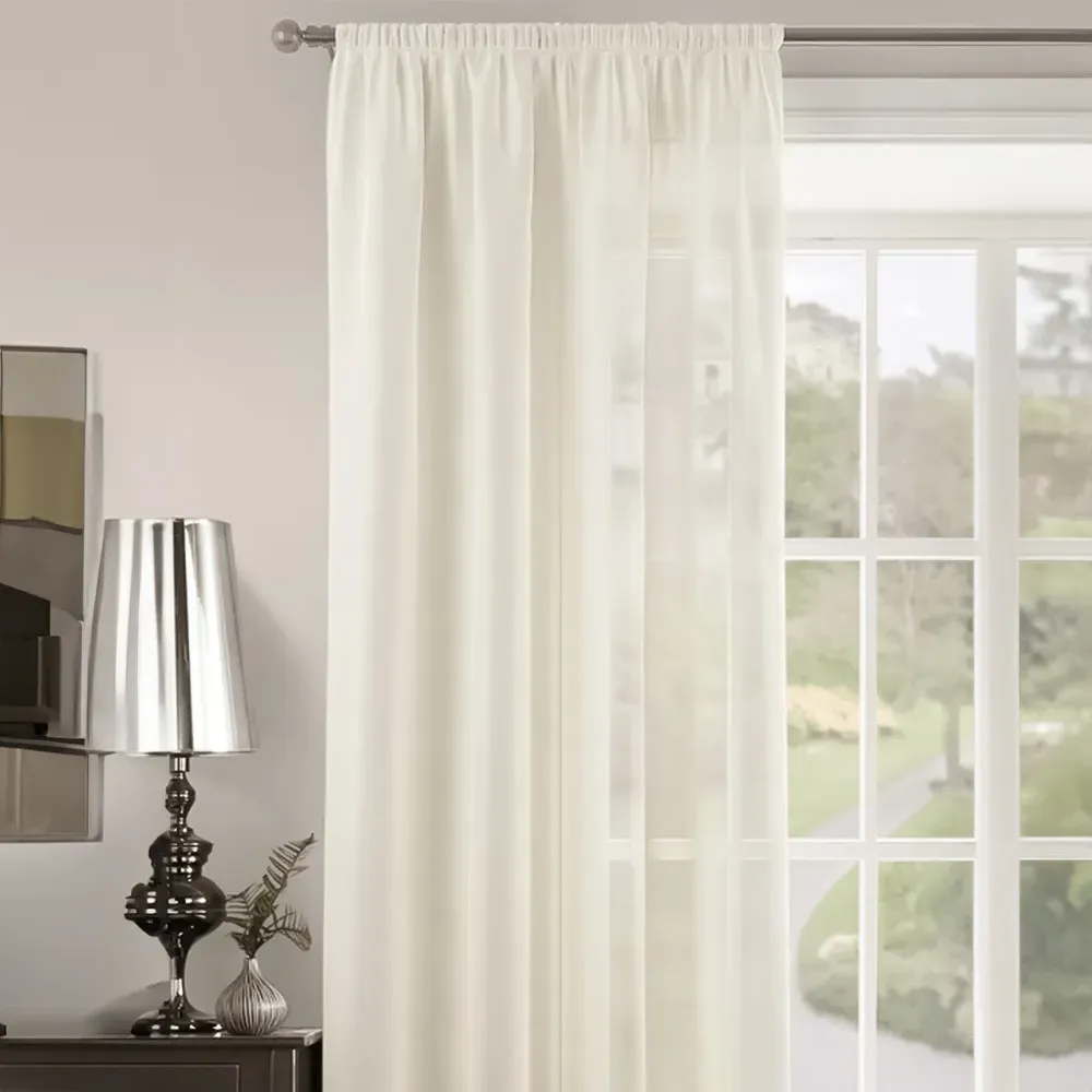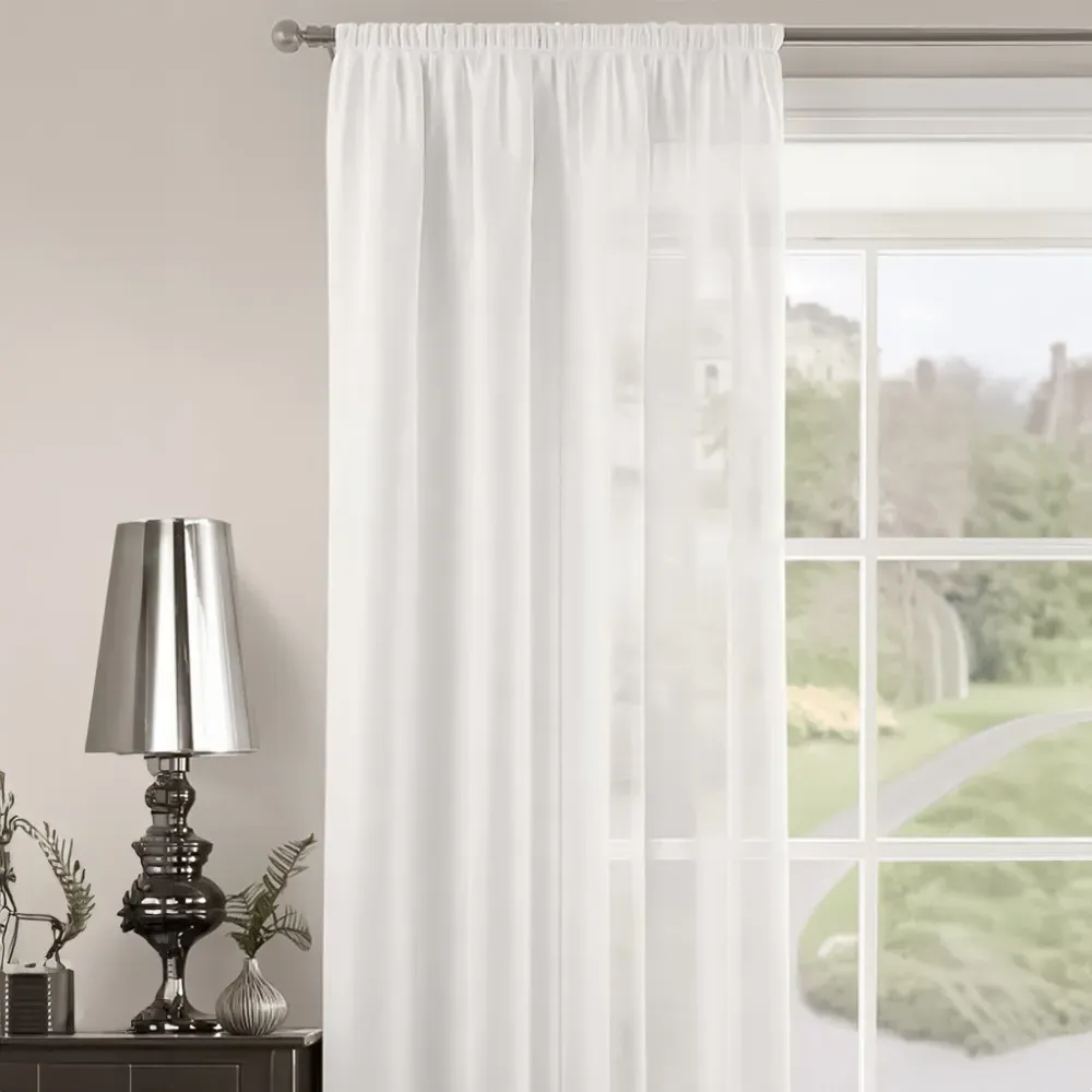 The Riva Plain Slot Top Voile Panel Curtain offers soft light filtration with its translucent voile fabric in a calming duck egg blue. Crafted from 100% durable polyester, it provides easy care maintenance while the slot top design allows simple installation on standard curtain rods. The smooth polyester construction ensures machine washable convenience, while the voile weave gently diffuses natural light throughout your space. W150 x H122 cm.