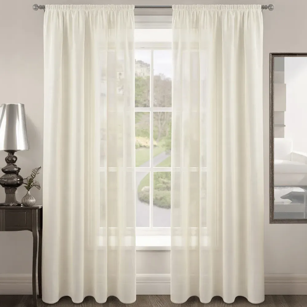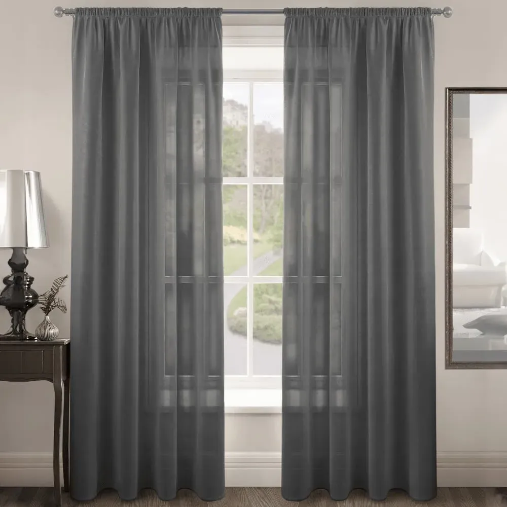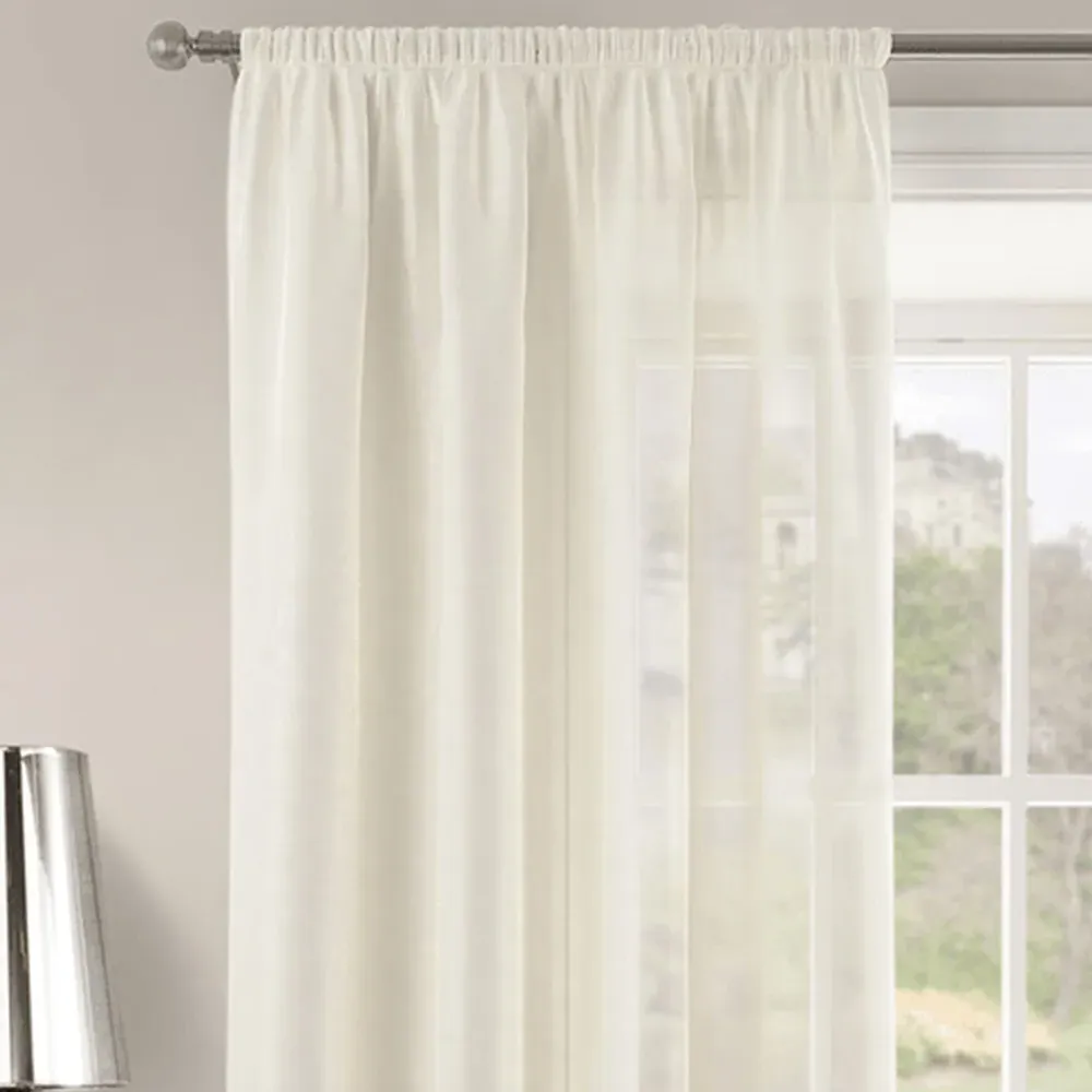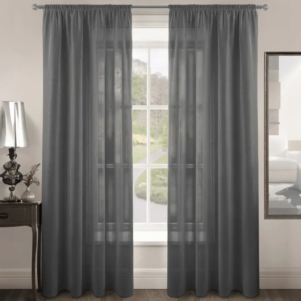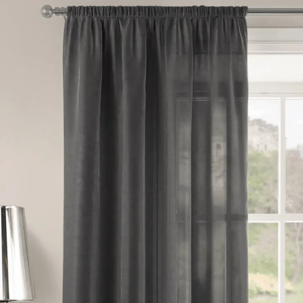 The Riva Plain Slot Top Voile Panel Curtain offers soft light filtration with its translucent voile fabric in a calming duck egg blue. Crafted from 100% durable polyester, it provides easy care maintenance while the slot top design allows simple installation on standard curtain rods. The smooth polyester construction ensures machine washable convenience, while the voile weave gently diffuses natural light throughout your space. W150 x H122 cm.