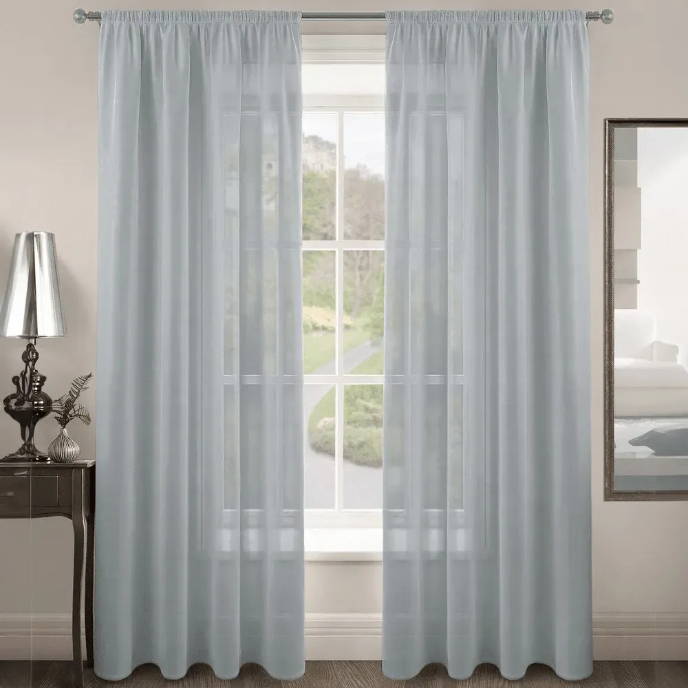 Upgrade your living space with the exquisite Velosso Riva Plain Duck Egg Slot Top Voile Panel Curtain 150 x 122cm. With its stunning hue, this curtain exudes elegance and sophistication while allowing soft sunlight to illuminate your room. Crafted from 100% durable polyester, this curtain is both resilient and easy to care for. Simply slide it onto your curtain rod to instantly elevate your decor. When it's time for a cleaning, you can conveniently toss it in the washing machine. Effortlessly add a touch of glamour to your windows with this beautiful selection.