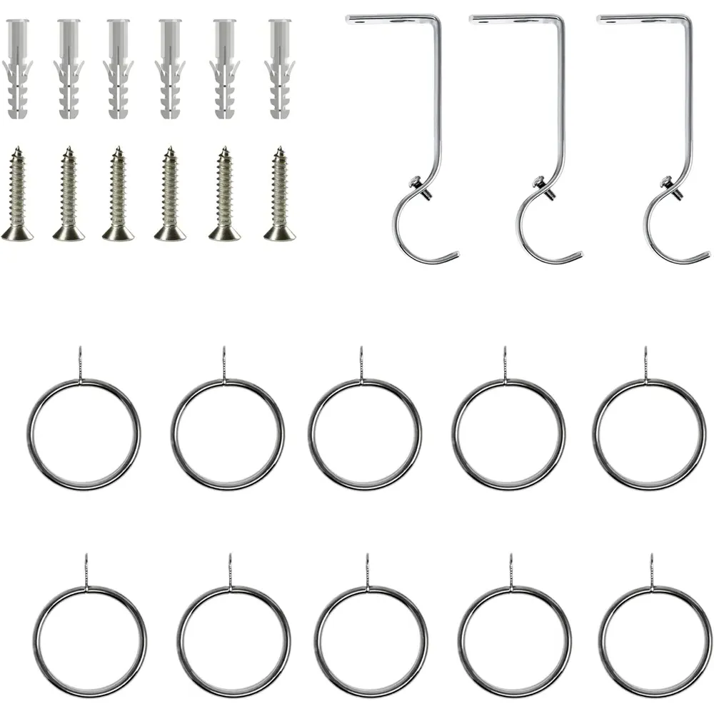 The extendable curtain pole offers versatile window fitting with its telescopic design, adjusting from 40cm to 144cm in 1cm increments. Its high-grade metal construction provides rust and corrosion resistance, while the 25mm thickness supports all curtain weights from light voiles to heavy drapes. The complete set includes brackets, matching rings, crystal finials, and wall fittings for immediate installation. The eyelet brackets feature tightening grub screws that hold the pole securely in place.